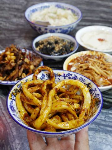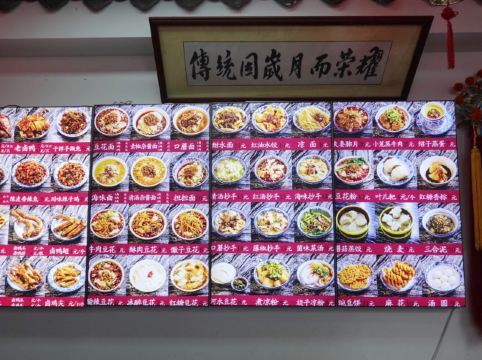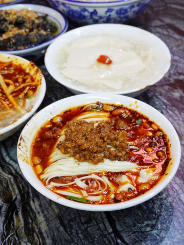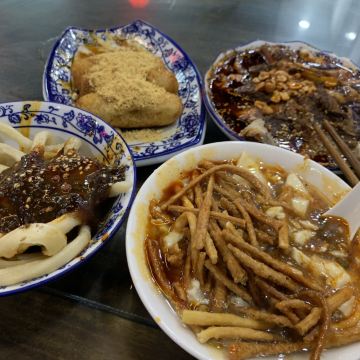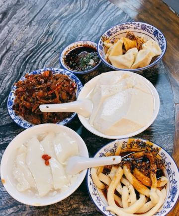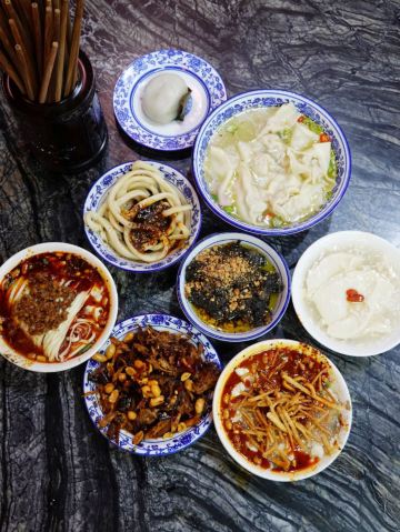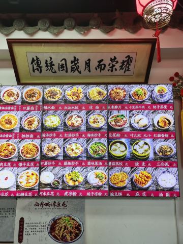 冰醉豆花,红汤抄手,钟水饺,甜水面,馓子豆花,豆花面,红糖糍粑,担担面,豆花,抄手,牛肉馓子豆花,三合泥,招牌甜皮鸭