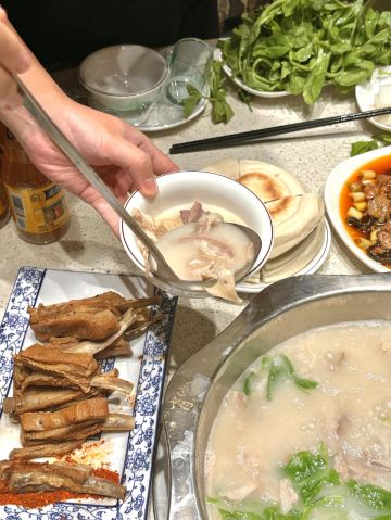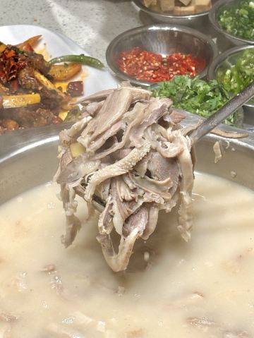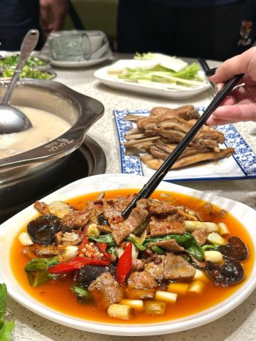 成都好冷啊❗豌豆芽➕羊肉汤让我搞起来了 老成都人都知道的这家,读书的时候爸妈就带我来过,天气一冷,一家人都要过来聚个餐。 羊肉汤汤底纯白,味道鲜美,里面的羊肉和羊杂也挺好吃的,处理的干净。边喝汤边吃羊肉,把嫩嫩的豌豆芽倒下去,烫一下就好了,这个时间的豌豆芽嫩的很。 蘸碟:腐乳+小米辣+香菜+葱花,再来一勺羊肉汤,就ok了。 香酥羊排外焦里嫩,吃起来很香辣,很入味。 鲜锅羊🐏蛋🥚,QQ弹弹的口感,没有膻味,还挺好吃。 辣卤羊蝎子猛吸一口,就能把肉🥩和汤汁一起吸入。 吃羊肉也不怕上火,吃完暖暖和和的。 📍肖仙仙羊肉汤·创始于1996年(双楠店) 栖霞路46号附11号