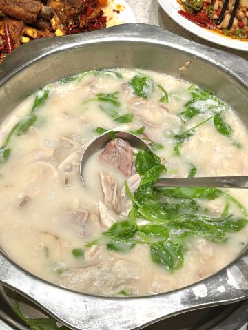 仙仙精品羊肉汤,豌豆尖,羊杂,仙仙羊肉串,炭烤羊排,萝卜,羊肉汤锅,白面锅盔,肝腰合炒,仙仙肝片