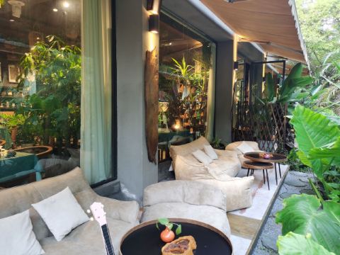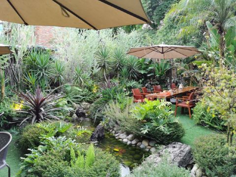 环境非常不错,庭院里面的植物感觉非常用心,茶馆里面有一根镇馆的乌木,所以这个庭院叫乌木庭。在用餐前能够在庭院里喝茶谈事,在这秋天的温度下,一切都是感觉那么合适。