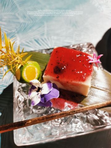 融合·黑醋安格斯牛肉配米麻薯,湘式·黑松露灯影鱼片,融合·种花家蘑菇蛋,川式·北极贝玉女果,川式·馥郁墨鱼仔,法式·樱桃鹅肝