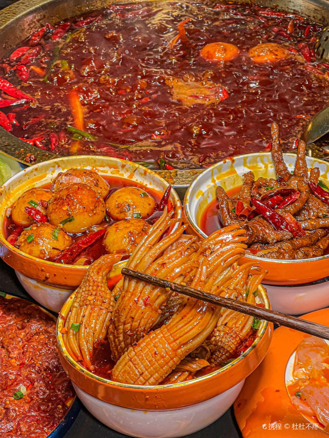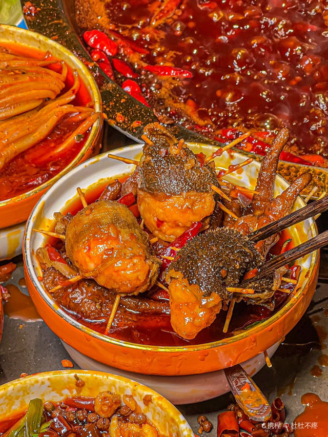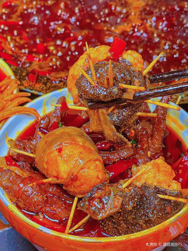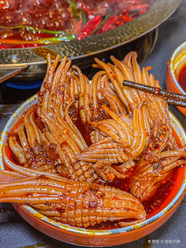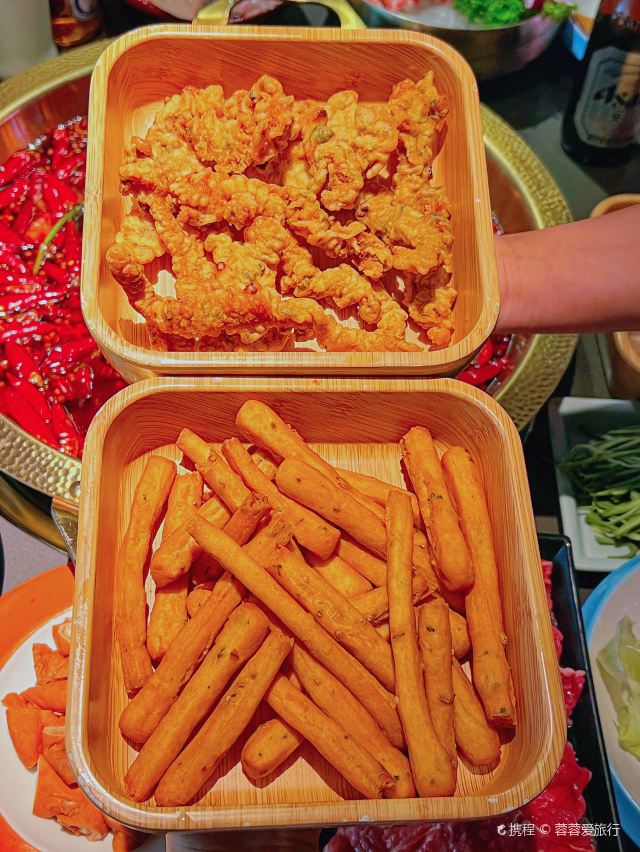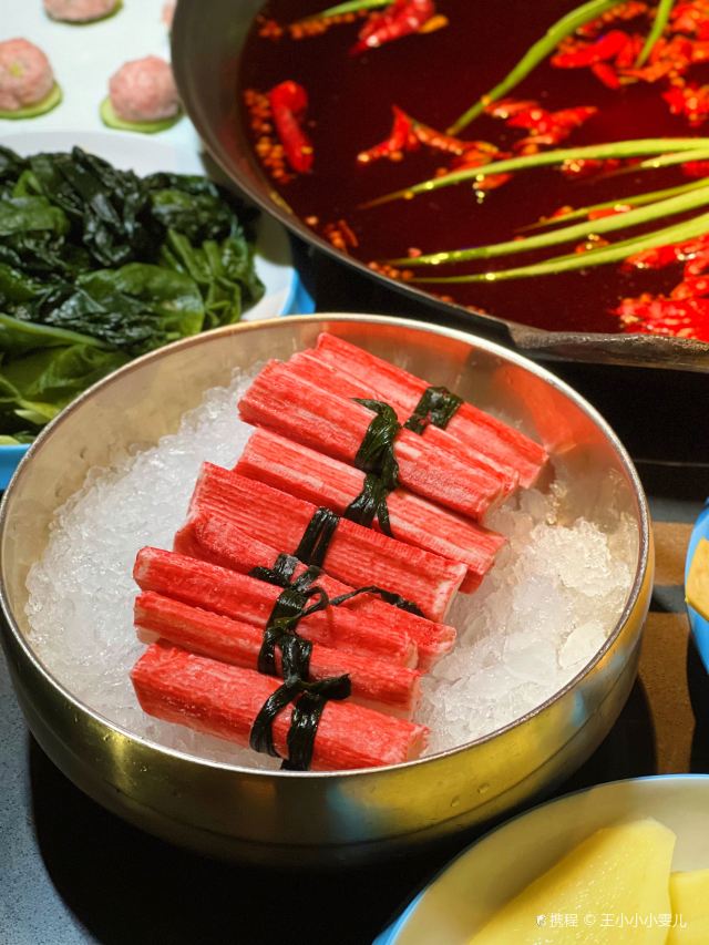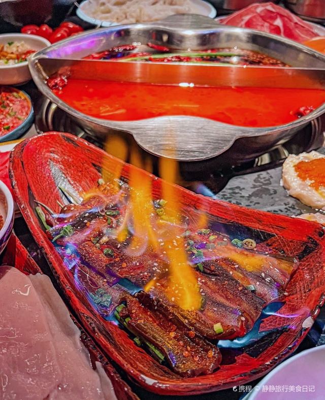 静静旅行美食日记每次经过旺夫火锅·我们一起旺(中坝店) 都在排队,听说他们家的火锅吃了能“旺夫”!今天就来推荐比较有特色的就是火焰麻辣鳝鱼了。①“火焰麻辣鳝鱼”哇端上来真的还冒着火焰口看着就很有食欲,大片大片的鳝鱼,肉质很厚实,吃起来麻麻辣辣的!②“毛肚包虾滑”这种吃法,真的绝啊!用毛肚包着虾滑煮,口感很丰富,一口一口,吃起来太爽了。③“生扣鸭肠”火锅的灵魂之一,新鲜鸭肠处理的很干净吃起来很脆④“鲜椒麻辣牛肉”分量很足牛肉很嫩、辣味正好必点。⑤“蟹柳”铺在冰上,蟹柳的品质大大提高了,味道也是非常鲜,口感比较细腻。⑥“火箭鱿鱼”深海鱿鱼切成花刀,烫熟后变成火箭形,没有人能拒绝它的可爱模样吧,口感Q弹,一口一个很过瘾的。⑦“虎皮鸡爪”先炸后煮,软软糯糯就很绝!鸡爪一吸就脱骨,在红锅里面煮久点口感一级棒!饱吸辣油真的太巴适得板!#美食旬味会 #当地才能吃到的美食 #排队也要吃的火锅
