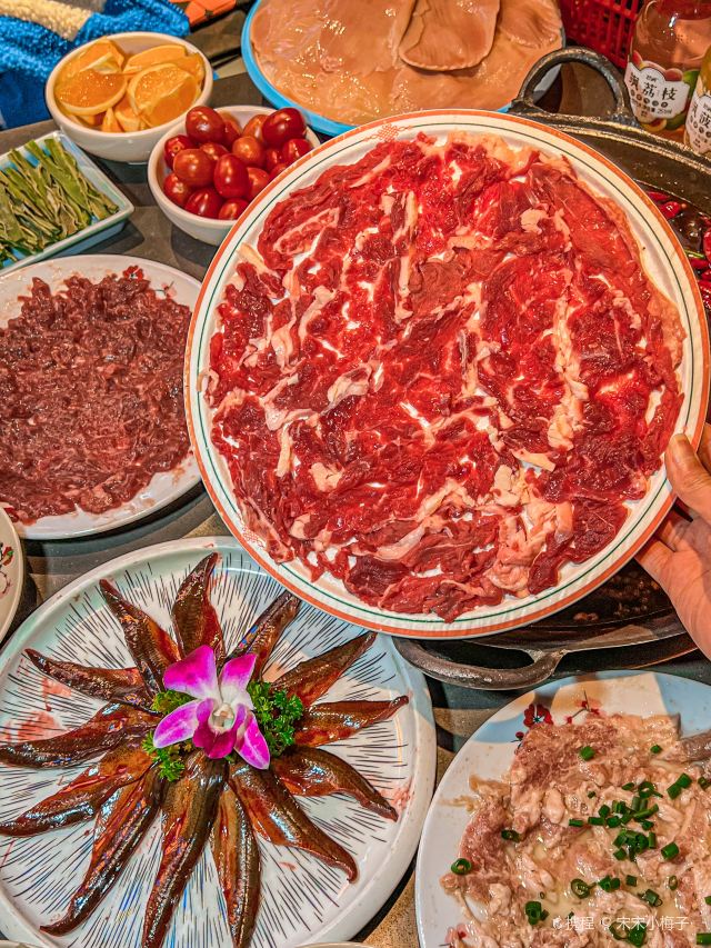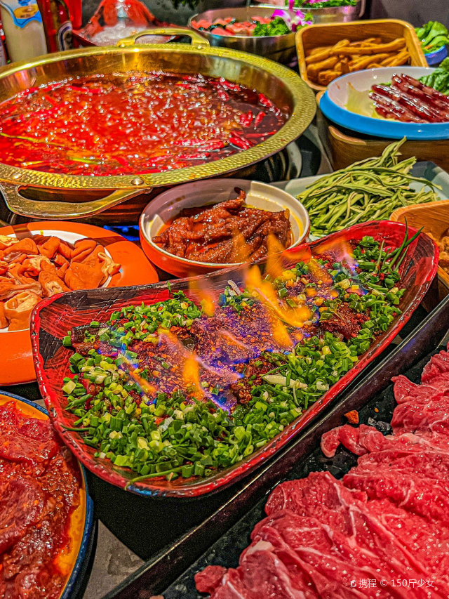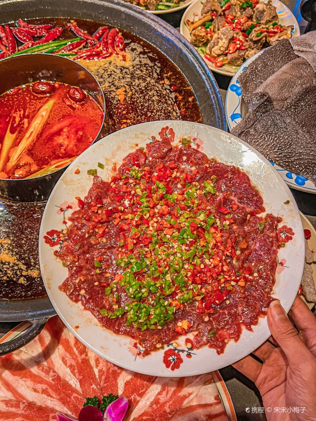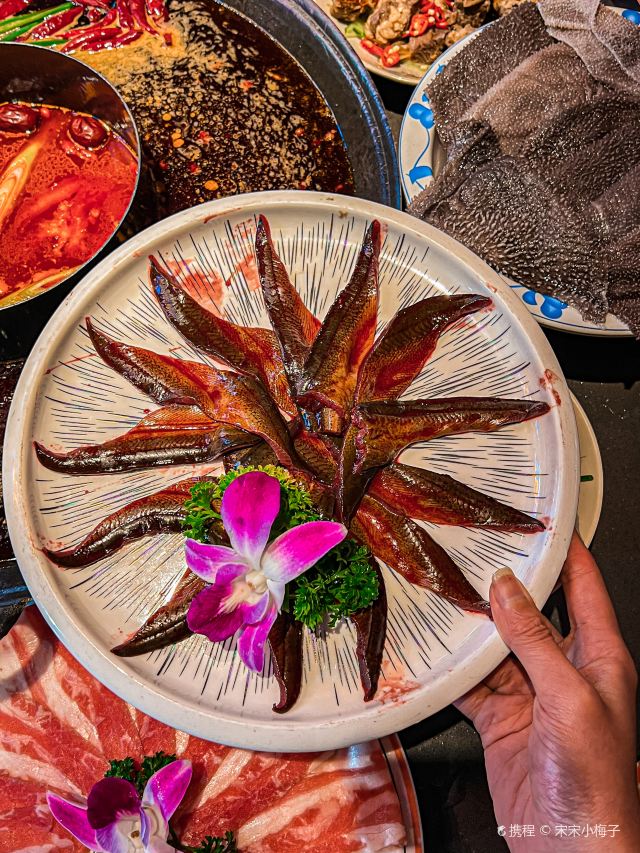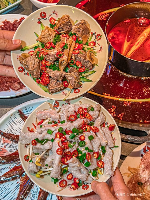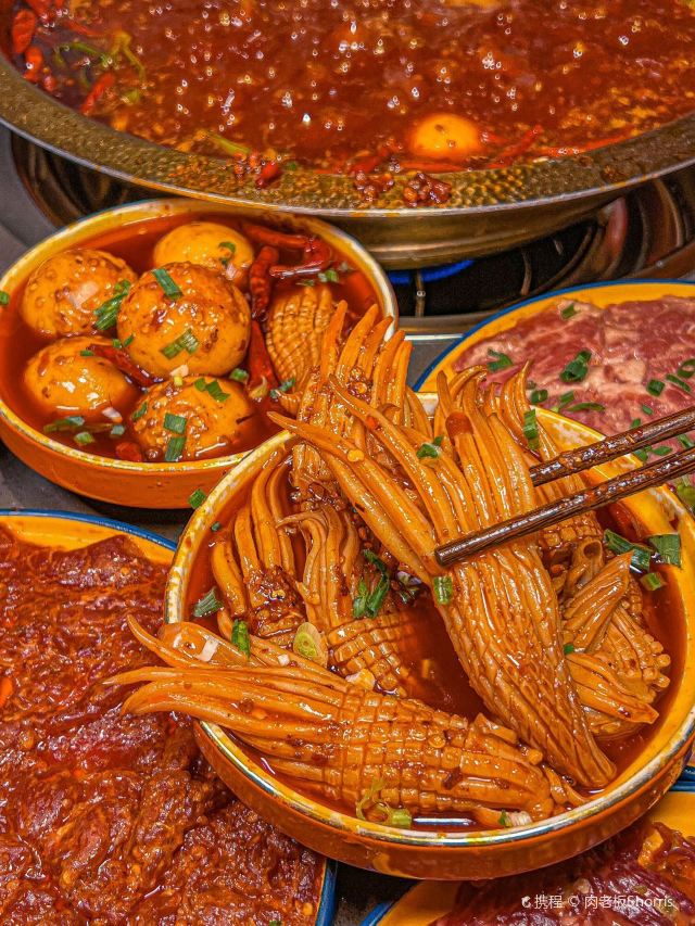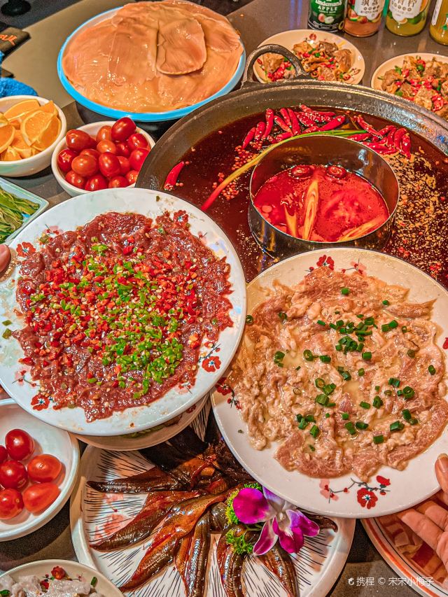 鲜椒麻嫩牛肉 ,巴掌腰片,火焰麻辣鳝鱼,生扣鸭肠,鲜牛肉,现炸酥肉,鱼子虾滑,糍粑,屠场水牛毛肚,重庆嫩牛肉,红锅