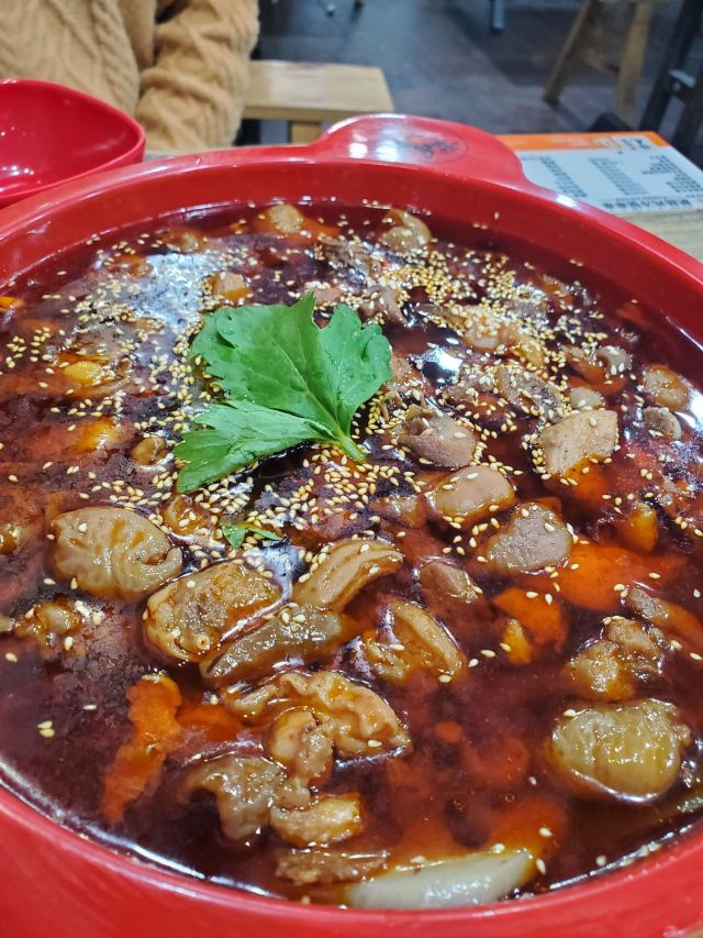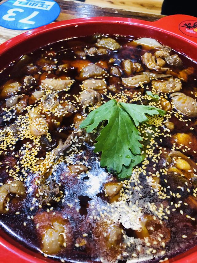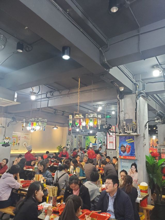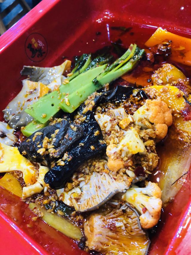 CD云上我陶醉了,不过一下口味道很一般呐,并没有想象中一样好吃,串串也是很一般,没有麻没有辣,唯一就是油多,还有油碟很一般,还是那句话,油多,芝麻多,其他的一般般。再说服务了,人确实多,我们中午去的,所以人特别多,不过不需要排队,我们点的串串前面拿错了,拿了一盘没有蔬菜的串串,我比较喜欢吃蔬菜所以基本多蔬菜,男朋友喜欢吃毛肚跟牛肉所以点这两样,结果不知道是谁的,我们说不是我们的,服务员拿走了,又拿了一份冒吉子,我们没有点这个菜,我们又说不是我们的,服务员又拿走了,最后终于上了我们的串串,结果只有蔬菜,没有牛肉跟毛肚,我点的土豆也没有,我们两个互相望着对方,最后还是不坑一声的吃了,一个串串一块五,我们串串好像是33个,不过总感觉没有这么多,你们去的话一定自己点串串的时候就数好签签,并看好自己点的是哪些菜,不然心里不舒服。最后就是环境了,环境一般,于红色为主,看着红红火火,还是不错,也挺干净利落的,人来人往,不过保持的很干净,服务也很勤快,上菜也很快,这次体验一般,价钱还是小贵小贵