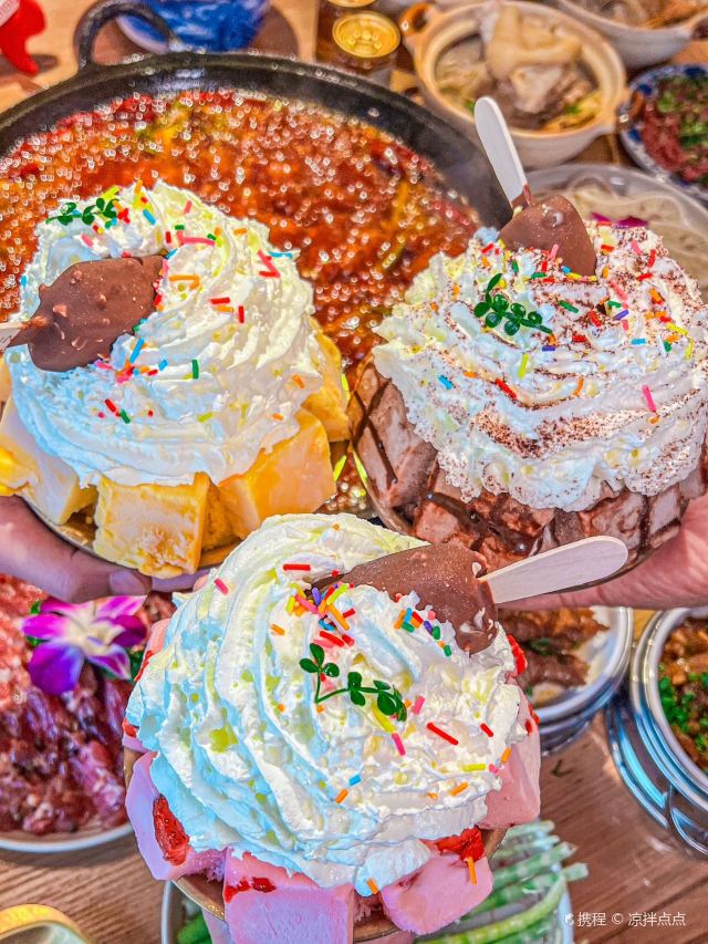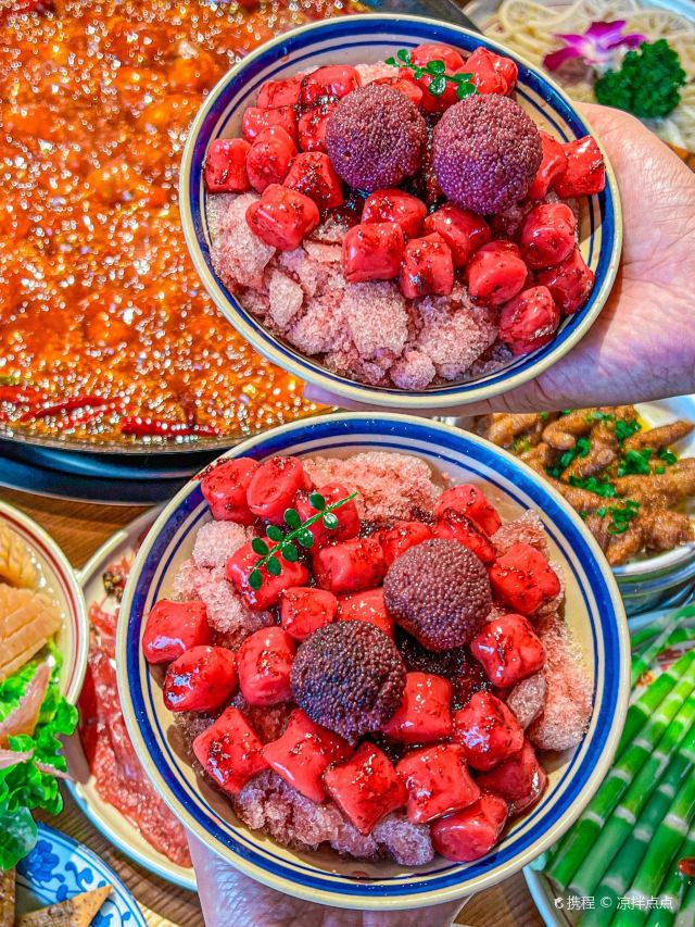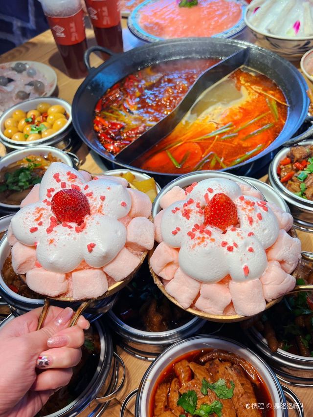 成都火锅千千万,让我印象深刻的却没有几家 今天给大家安利一家超赞的火锅店🫰🏻 菜品新鲜品质好,还会不定期推出各种新菜品和甜品,把食客的味蕾拿捏的死死的! 他家主打的是各种手工菜,尤其是烧卤系列 都是当天纯手工现卤现压,新鲜上桌~ 一抿就脱骨的『辣卤鸡爪』『辣卤猪蹄』 软糯入味的『辣卤糯莲藕』『辣卤芋头』👅 上桌可以直接吃,卤味十足~ 煮进锅底里味道更加麻辣鲜香,真的超爱🥰 ✔️🍓草莓雪顶麻薯冰 现点现做的手工草莓雪顶麻薯冰没人能拒绝! 颜值爆表,酸甜爽口,放在整个成都都是很炸裂的存在!超火锅的新品简直在当地遥遥领先啊👍🏻 ✔️🧋暴打系列 冰镇杨梅水、红心芭乐水、暴打柠檬茶 满满一大杯,热量低VC高,解辣解腻,和麻辣火锅简直太搭了! #冬天最爱的火锅店 #2024你的新年美食向导