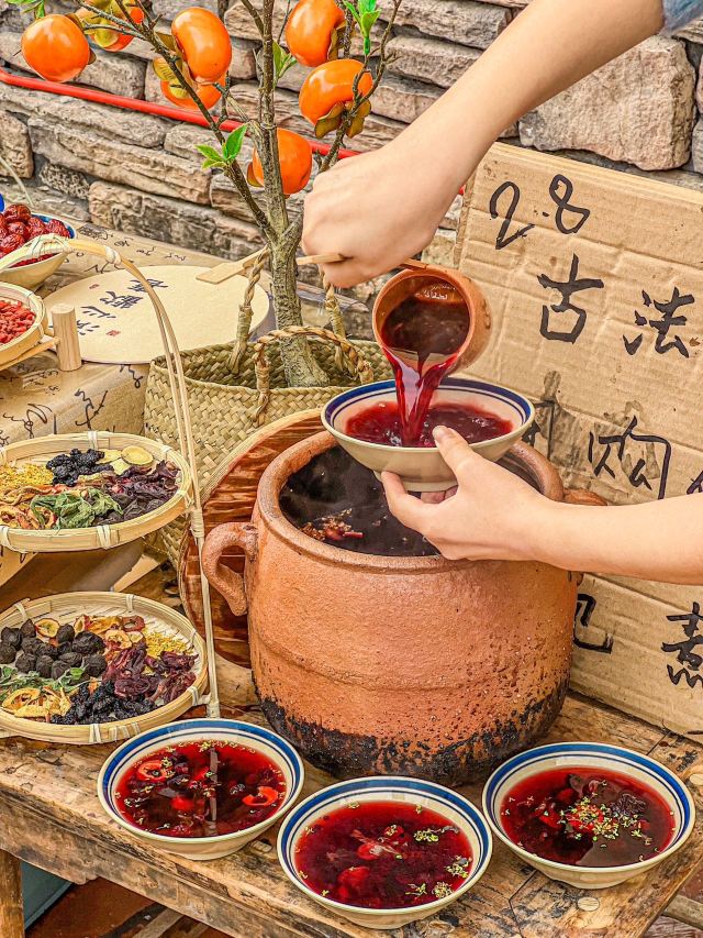 终于喝到古法酸梅汤了!!八种食材手工现熬,但是没有什么奇怪的药味儿,酸酸甜甜,好清爽解腻。 还有云南罐罐烤奶,一整个香气扑鼻!!还有药膳蹄花搭配炒饭,再来上一ロ酸梅汤,太安逸了!! 口味超级多的牛乳冰,杨梅冰汤圆,暴打柠檬茶牛油火锅味道炒鸡浓郁,真的烫什么菜都好吃!! #美食旬味会 #我的深夜食堂 #尝一尝地道老字号 #浪漫约会餐厅 #真香小吃大集合