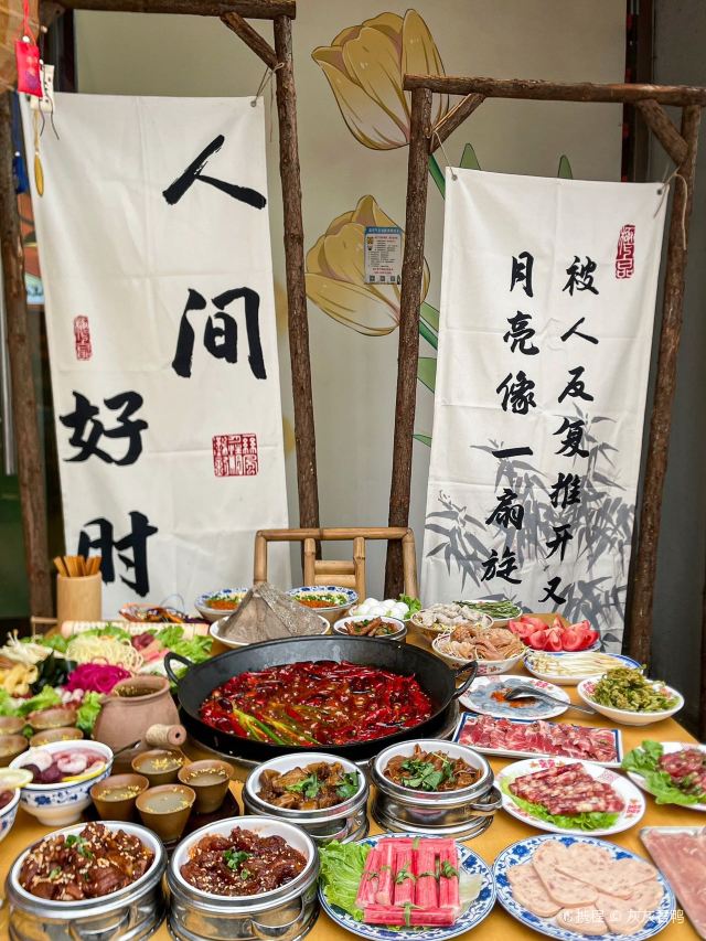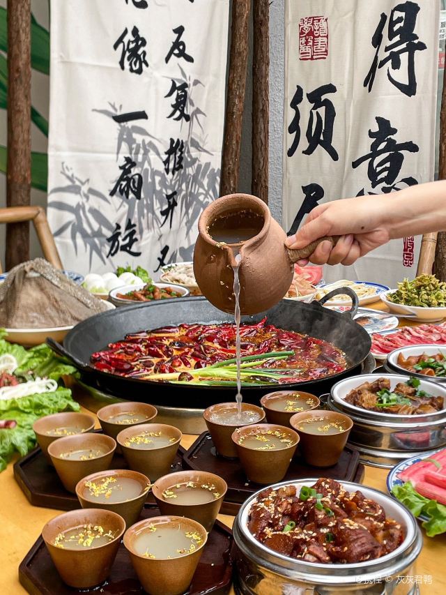 啊啊啊啊啊,竟然有这么好看的火锅店!! 门口的位置也太出片了~ 他们家的这个桂花米酿真的超级香🥴,据说酒曲都是用的自制酒曲,在发酵前桂花和米酿就结合在一起了,再用高温激发出桂花的香味,真的太好喝了!😭 月光宝盒大盘菜!里面有17种菜品,🤤每一样都是招牌中的招牌! 他们家的锅底真的很够味!醇香的牛油锅底爆辣爆爽!吃辣了还有各种解辣甜品,我真的要夸一夸杨梅冰汤圆!清爽解辣,太巴适了! 👒超火锅(彭州店) 📍贤清南路295号