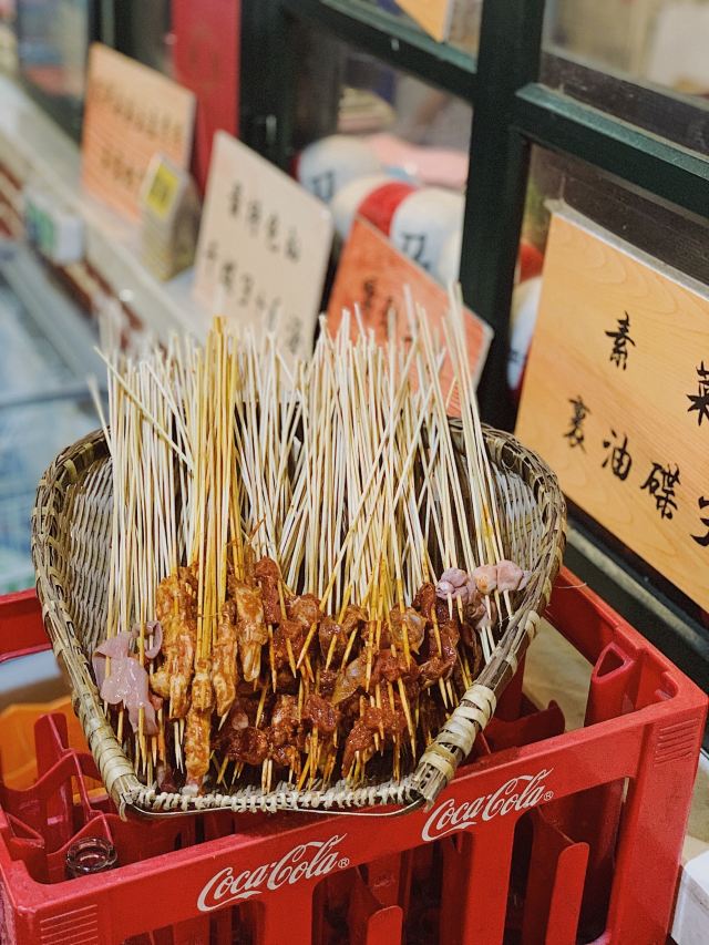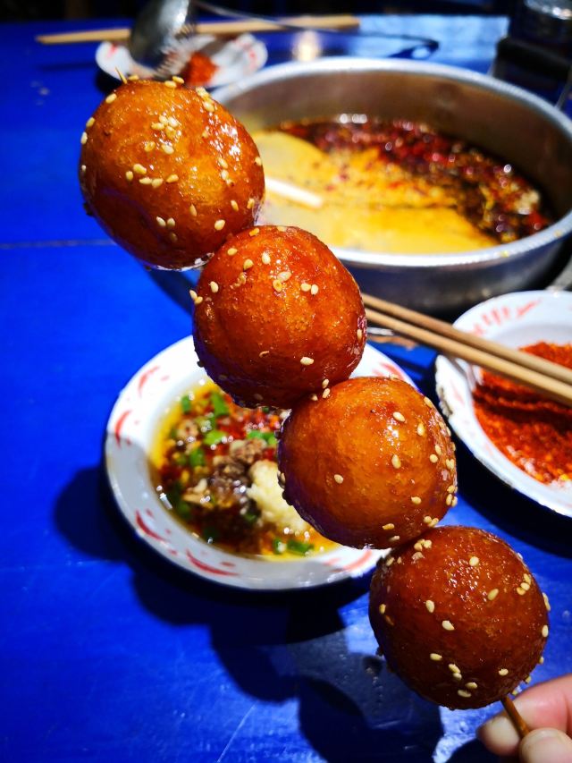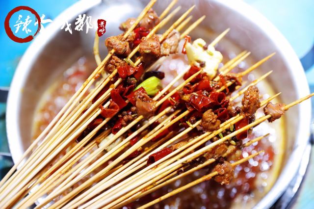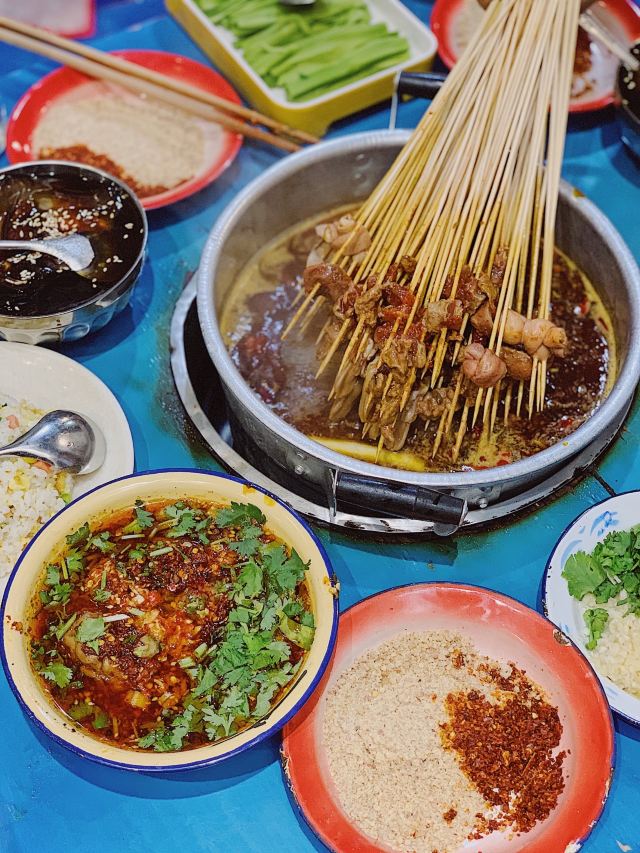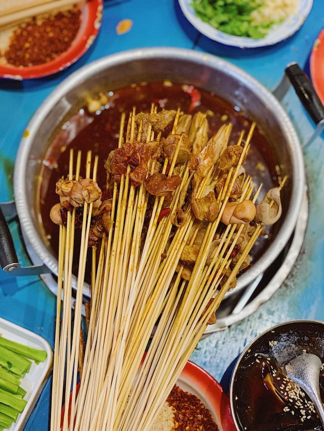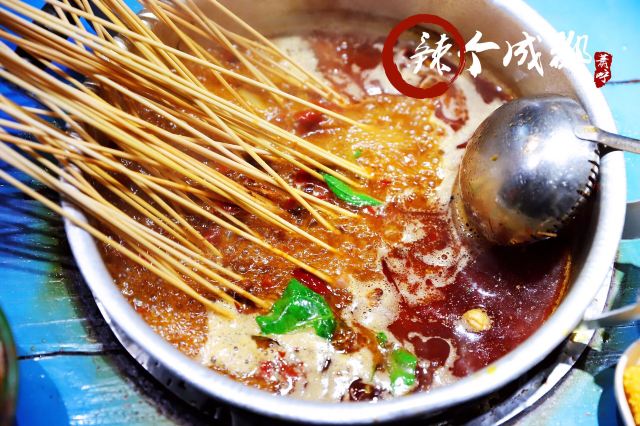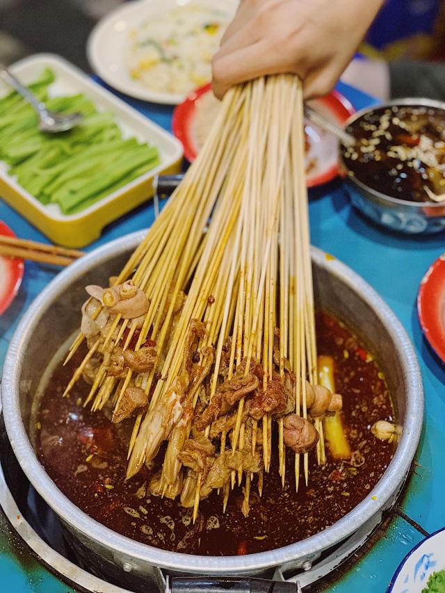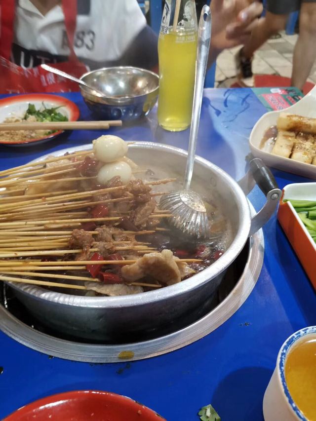 老成都风格的串串香,融入了很多老成都的元素,老式路灯、院子,甚至是小卖部售卖的食物和张贴的标语,给人穿越回童年时光的既视感。串串香汤底香辣经典,味道正宗。