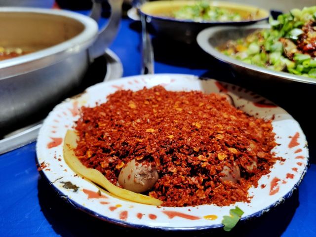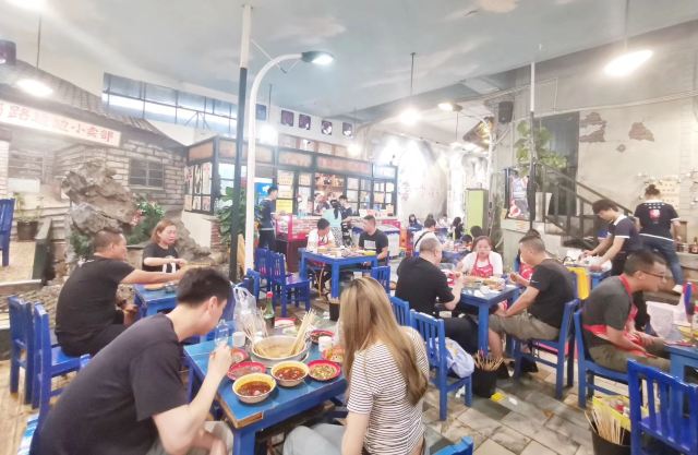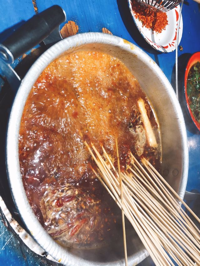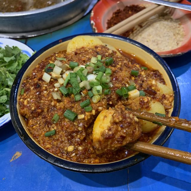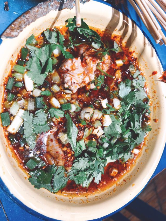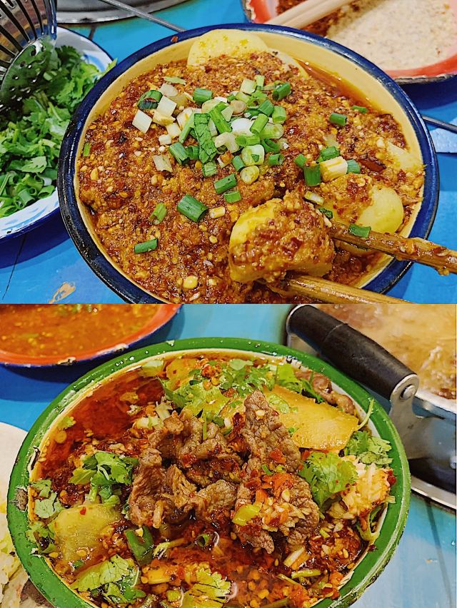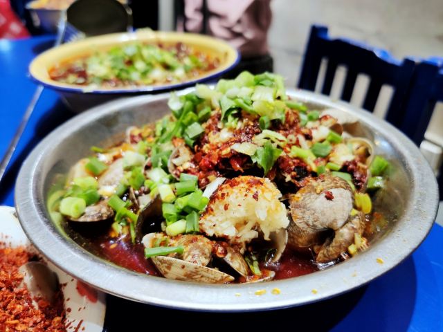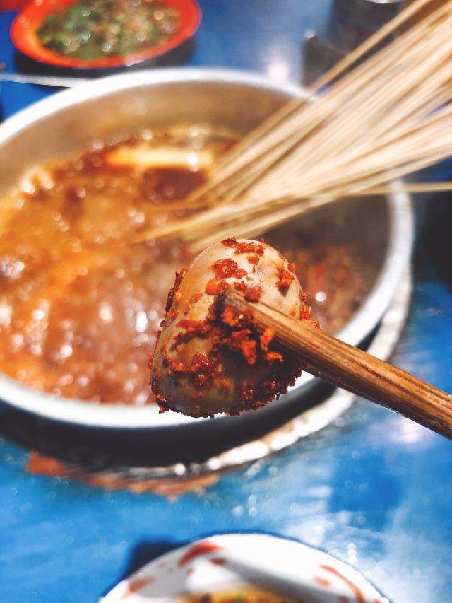 老成都风格的串串香,融入了很多老成都的元素,老式路灯、院子,甚至是小卖部售卖的食物和张贴的标语,给人穿越回童年时光的既视感。串串香汤底香辣经典,味道正宗。