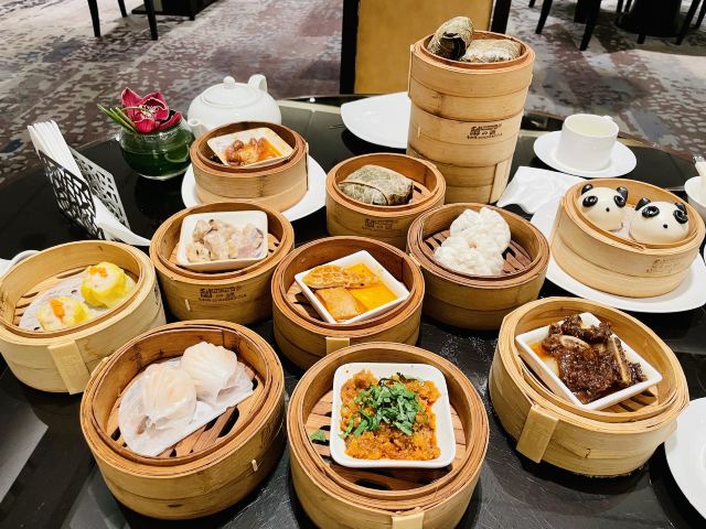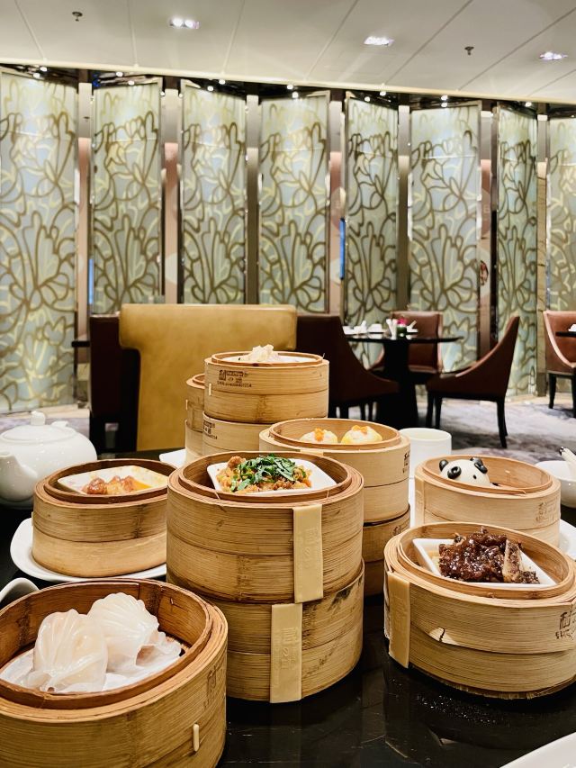 卖牛奶的猪成都万豪系酒店的中餐厅好像特别喜欢做点心任点任食,包括丽思卡尔顿、瑞吉、W、丽都喜来登、JW万豪都在做点心自助,除了丽都喜来登做川菜点心自助以外,其他几家都在做粤式点心自助,丽思卡尔顿、W、丽都喜来登只坐午市点心自助,瑞吉和JW午晚市都做。 推荐指数 ⭐️⭐️⭐️⭐️⭐️ 🖼餐厅环境: 餐厅大厅座位并不多,但大厅是可以看到中厨房内部的情况,虽然只能不能看得很清晰,但起码在万豪系的酒店的中餐厅中,真的很少能做到让吃客能知悉餐桌上的菜是怎么做出来的。 💰人均消费: 门市价358/位,点评价188/位,含菊花茶,价格上面比成都瑞吉要实惠。菜单79道菜,其中8道JW万豪尊享(每人尊享一款)。 🍲菜品推荐: 【JW万豪尊享】 川椒香煎草原羊排 深海虎虾(金沙酱焗) 樱桃鹅肝 川椒香煎草原羊排,真的挺好吃的,外焦里嫩! 深海虎虾(金沙酱焗),摆盘一般! 樱桃鹅肝,蛮可爱的嘛! 【广东靓汤】 冬瓜薏仁老鸭汤,在酒廊也有喝过,作为例汤还可以! 【开胃前菜】 鲜椒去骨鸡爪,黑凤爪。 蓉城棒棒鸡,跟口水鸡差不了多少。 桂花山药,吃起来不像山药,像布丁的口感。 【川粤时光】 香芒汁脆虾球,味道蛮不错。 黄田坝小笼粉蒸牛肉,个人不太喜欢吃粉蒸肉。 【粤式烧味】 蜜汁炭叉烧,偏瘦,瘦叉烧其实也挺好吃的。 深井烧鸭皇,烧鸭皮脆脆的,口感与瑞吉的对比各有喜好吧。 【JW万豪精选】 JW万豪虾饺皇,虾饺皮太容易破了。 蚝皇叉烧包,叉烧包的味道还可以,有叉烧味。 熊猫流沙包,可可爱爱你样子。 麻辣金钱肚,味道一般,没有瑞吉那么独特,正常的粤菜口味。 名酱蒸凤爪,正正常常。 黑椒牛仔骨,正正常常。 鱼籽鲜烧卖,正正常常。 梅子蒸排骨,正正常常,更喜欢吃芋头蒸。 荷香糯米鸡,糯米鸡的馅一般。 泰式咖喱鱼蛋,鱼蛋的口感其实蛮正中,很有弹性。 【点点心意】 XO酱炒萝卜糕,XO酱好像没有吃到,很烫口,放凉点好吃。 巧手榴莲酥,看卖相点的。 【肠粉】 香茜叉烧肠粉,里面的叉烧挺多。 【甜心美意】 太妃杨枝甘露,像简易版的。 红莲姜汁炖雪蛤,还是喜欢喝雪耳。 蒸点是一起上,拍几张集合完全没有问题。所有的点心按个上,这样的点菜方式不会浪费,如果一人食的话也很合适!每一道菜的分量会比瑞吉的上,不过任点任食的话,小分量合适单身人士!
