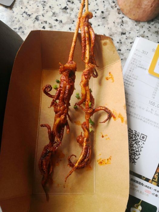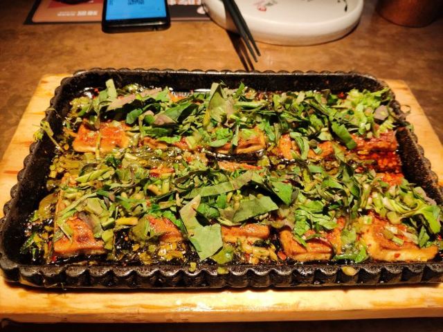 菠萝小油条,烤猪蹄,黑椒耗油味豆花烤鱼,麻辣诱惑味豆花烤鱼,包浆豆腐,芝士烤红薯,花椒冰淇淋,青柠气泡水,烤猪颈肉,青柠烤鱼,香糯烤鸡脚,黄金酸辣,经典麻辣烤鱼,炭烤鸡翅