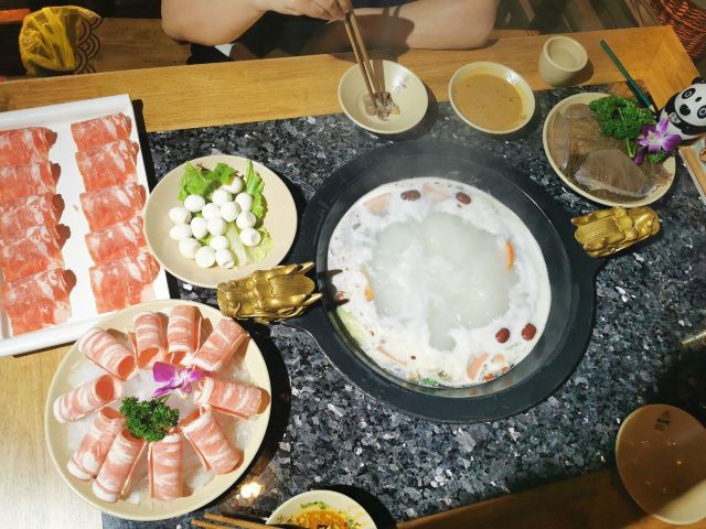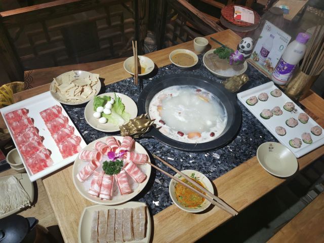 不知吱吱五一到春熙路逛街,太有口福了,蜀大侠在火锅一条街早已打响了名号,逛了街就来嗨吃一顿,安逸得很 环境很赞的,江湖大侠复古风,很有格调的。而且占据了二楼三楼两层,规模好大,包间都有好几个,在这里请外地朋友,尝尝资格的成都火锅,热热闹闹的,很有面子,很有氛围 锅底很香,辣度合适,纯厚而不特别重口,就算烫虾滑都吃得出鲜美,而且久煮不苦不咸 口蘑虾滑很有意思,虾滑是装在蘑菇洞洞里的。吸收了蘑菇的鲜香,口感比一般的虾滑更棒。虾肉比例大,水润细腻又紧致,太鲜了 烹香榴莲滑,是充满了榴莲气息的滑肉,表面包浆一般的滑糯质感,正是榴莲味的源泉,口感香浓又回甜。加上肉很嫩很细致,吃着当然爽口 ⛱⛱花千骨、葱香椒麻脆舌、江湖牛肉,都超赞的,现在团购价更是实惠,可以冲啦