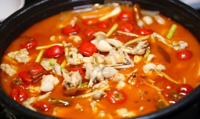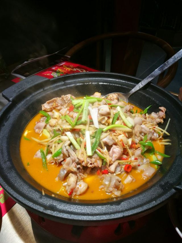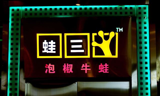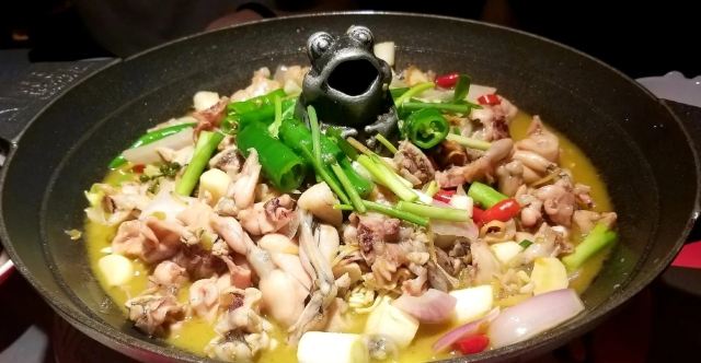 泡椒牛蛙,曾经去宁波那家火的一塌糊涂的泡椒牛蛙店一人点一盘吃得赌咒发誓的,还是咱们四川人自己做的泡椒牛蛙来得有诚意,不是醋酸味儿,正儿八经的泡椒才地道,他们家还有双椒蛙和烤蛙,难怪你们的蛙儿子回不去,不是在旅行,是成都人留下了它,蛙三的红糖糍粑和醪糟粉子也不错。地址:来福士广场负一楼。