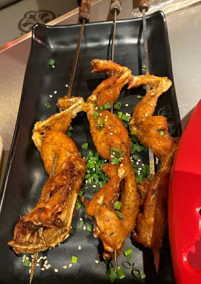 招牌泡椒牛蛙,锅巴土豆,溜耙鸡爪,麻辣蛙,烤玉米,青柠优格,金牌考牛蛙,烤五花肉,烤蛙腿,方便面,泰国风味汁配葱油饼,芝士烤红薯,魔芋,雪花鸡排,泡椒蛙,麻辣凤爪牛蛙
