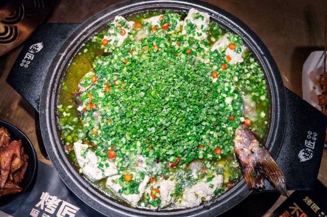 成都爆红的烤鱼店,黑金色系的搭配简约时尚,氛围非常适合年轻人。烤鱼口味丰富,其中麻辣诱惑味豆花烤鱼非常受欢迎,还有丰富的配菜和川菜可以选择,在当地人气非常高。
