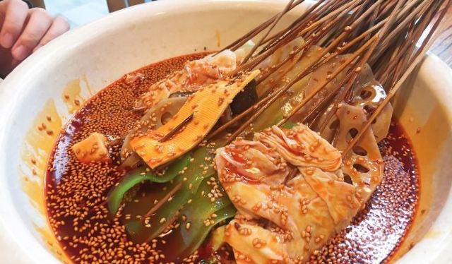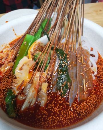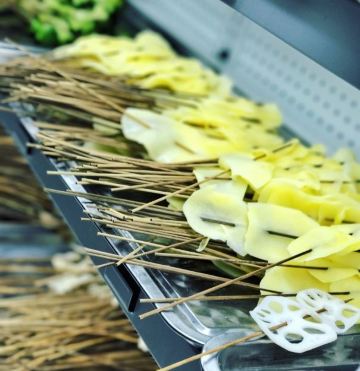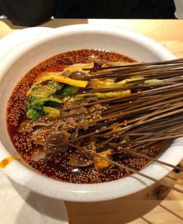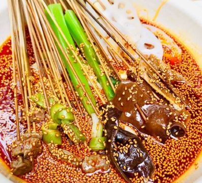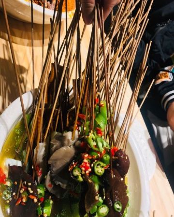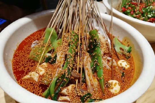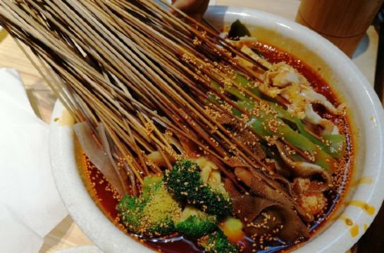 蓝了天绿了地[环境]就在太古里附近,我们住在附近的流星花园,准备去机场坐飞机了,最后还想试下这家。往后面一绕就到了 首先环境还挺好的,里面有很多串串自己可以挑选 位置非常多  关于排队,由于位置很多,而且吃的比较快,排队花不了多长时间,12点多去排了10几分钟就到了 「红油味钵钵鸡」看评论大家都推荐这个,对于广东人的我来说,红油真的很油,是辣油,味道并不够充分 「藤椒味钵钵鸡」这个是意外的好吃,藤椒味浓,很酸爽的感觉 这个比红油好吃太多了,后面红油里的竹签全放到藤椒味里,很好吃! 「招牌鸡汤饭」吃完钵钵鸡后吃一口鸡汤饭,无敌赞汤汁鲜美 当然我的小伙伴说鸡精味挺浓的,我倒不 觉得吃完辣吃一口汤饭味道超绝 #价格 超级便宜了,两个人吃78,这一顿挺值的,材料也比较新鲜
