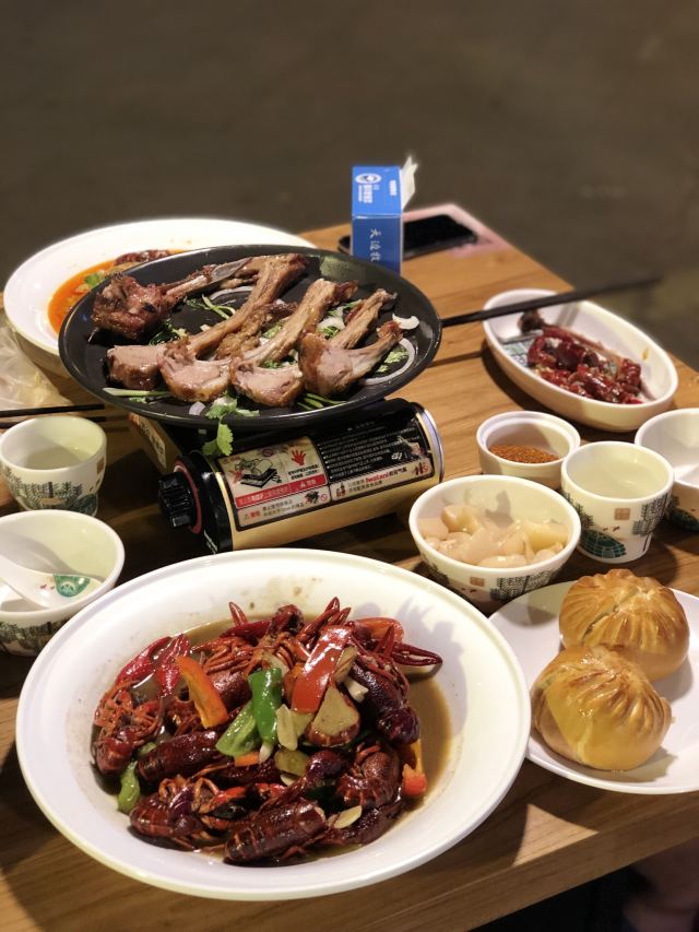 ~皮卡丘~夏天的来临,又一次开始了小龙虾的季节啦!夏天就是要吃,天天吃也是可以的哦!就看你自己的资金扛得住不,哈哈哈哈,不然就看看吧! 朋友相约这家店,都有点吃惊啊!不是说吃龙虾啊,怎么变成吃羊肉了!后来看了名字才知道这家也推出了小龙虾! [环境]环境还是不错的,风格是草原的感觉,所以在这种环境吃小龙虾,也是很有意思的哦! 「蒜蓉小龙虾」招牌主打的小龙虾,选择的是大个头的虾王,味道不错的哦!虾虾的个头很大,而且肉质饱满,口感很不错! 「十三香小龙虾」这个的味道很不错哦!好久没有吃到这么巴适的小龙虾了,肉感十足,两个人吃两斤多,其实都差不多了! 「奶茶冰粉」当然,这家招牌的奶茶冰粉也是不能错过的哦!毕竟满满的一大盆,端上来我就震惊了,里面的小料很多,口感超级的棒,快乐肥仔水有点意思哦! 「烤羊肉串」既然吃羊肉主打的店,那么羊肉串还是要来一点的,感觉味道不错,肉质很赞,火候把握也很到位的哦! 「黄金藕条」其实最初没有想到分量真的有那么多,完全出乎意料了。毕竟吃完小龙虾以后,战斗力都减半了,哈哈哈哈。但这个油炸火侯刚刚好,味道还蛮不错的哦!