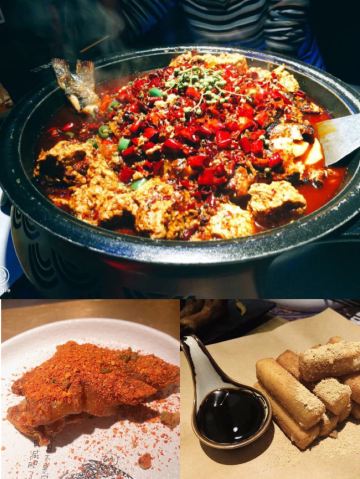 烤猪蹄,菠萝小油条,经典麻辣烤鱼,包浆豆腐,花椒冰淇淋,芝士烤红薯,桂花酸奶,烤猪颈肉,黄金酸辣味烤鱼,青柠气泡,醪糟冰汤圆,翡翠青椒烤黔鱼