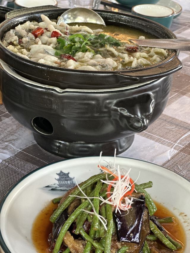 电风扇啊电风扇很早就听说这家火爆的餐厅,天天排队。和广汉回来的小伙伴纠结讨论了半天,为了吃还是决定去排队!到底有多好吃!!! 幸好在网上提前排号,等了20分钟左右。因为只有两个人,安排了一个临时的小桌子在包间门口过道上,人来人往确实很不方便。 点的都是推荐菜品,味道满意 |蒜茸虾仁^在面前现加热,给了一个小沙漏,沙子漏完了就可以吃了。虾仁有弹性又入味好吃。下面铺的粉丝很下饭。 |砂锅酸菜乌鱼片^酸菜很经典,乌鱼片嫩滑,砂锅里面的汤直接喝或者泡饭都不错。 |青豆肥肠^端上来的时候还冒着热泡。肥肠是先卤过,去了肥油,吃起来不腻。卤的非常耙软了,非常喜欢。 最后还点了一个耙耙菜。 两个人,吃了四个推荐菜!人均不到75,吃了个圆滚滚的肚子走出来看到外面还在排队[发呆]。 价格实惠,味道好,口味又适合全家大小。怪不得生意那么好。