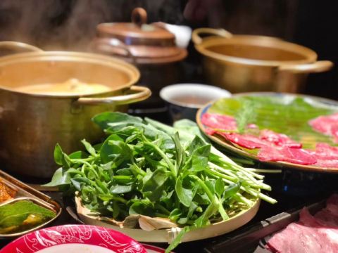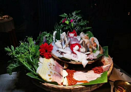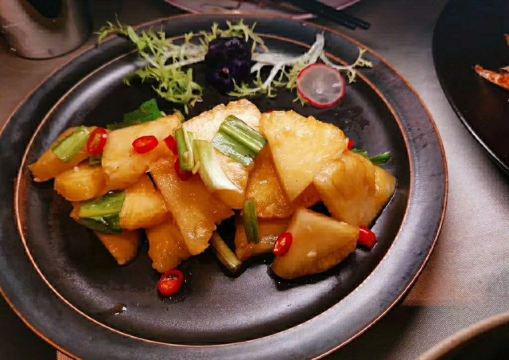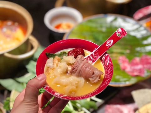 又来品尝这家木系的升级版,汤锅与正餐兼具,吃云南烫滇味,吃起热热火火,我们一桌四人尝了四种锅,我选择的是最云南的傣味酸辣锅,里面加了酸角。豆豉榴莲锅略黑暗,花胶锅是这两年的当红,菌汤锅算是常规。大救驾,鲜花饼,傣味牛肉,拌菠萝,拌米线这些云南菜点,平时吃惯了火锅川菜,换换口味,真还不错