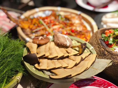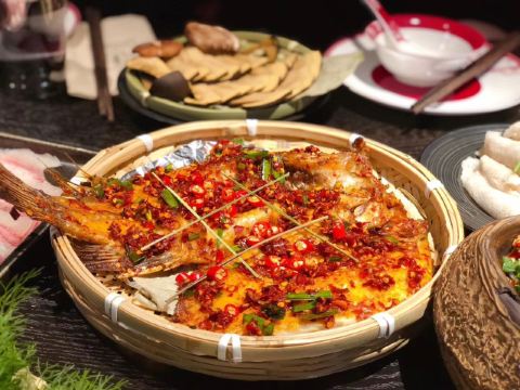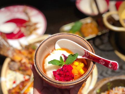 海鲜拼盘,泰国虎虾,肉类拼盘,云南米线,傣味柠檬鸡,傣家菠萝海鲜炒饭,火系凉拌米线,玫瑰冰酿,老奶洋芋,柠檬草烤罗非鱼,野生菌汤锅,傣式酸汤锅,铜锅土豆焖饭,建水豆腐,蘸料,勐海烤鸡
