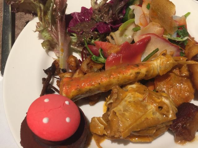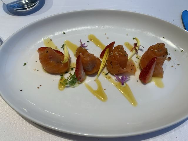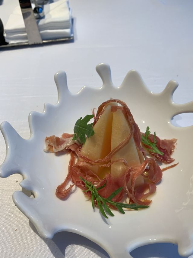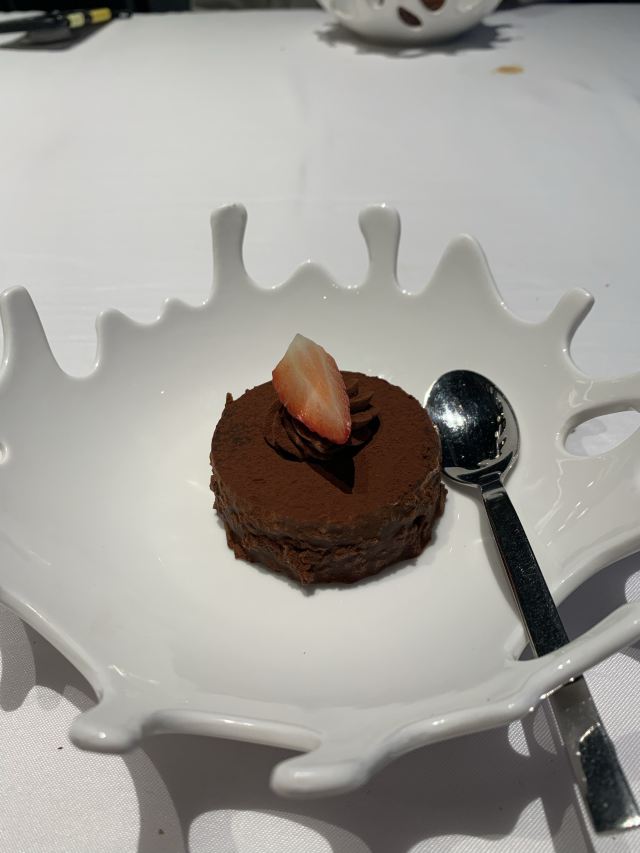 M5西冷,花椒布朗尼,西班牙火腿配蜜瓜,特制川香面包,甜菜头腌制三文鱼,菌菇汤