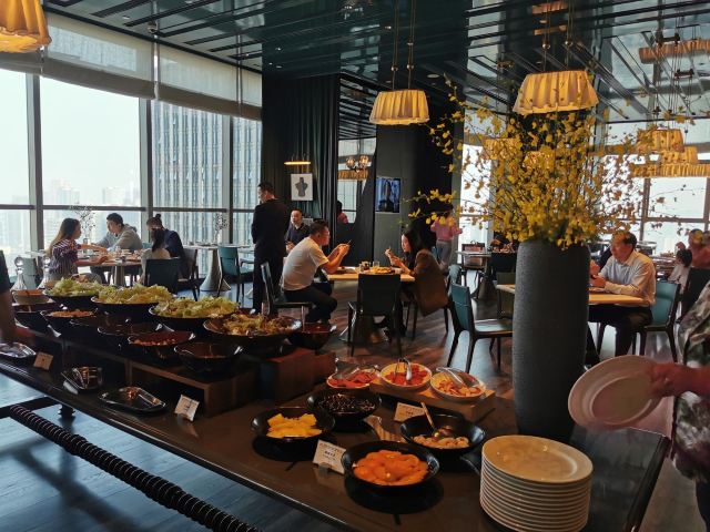 作为凯悦的私生子,确实味道和凯悦本系还是有一点差距,牛排和南瓜汤还行,估计是新开没多久吧,所以工作人员意识还不是很到位,不问忌口,让拿个东西也是到最后也没拿,分量其实不多,幸好旁边有住店的HAPPY HOUR填补一下,还有上菜的顺序,总体来说位置比较优越,但是菜式搭配可能需要调整一下,味道也还需精进,给好评是鼓励,并不是按酒店本身定位去评价的!