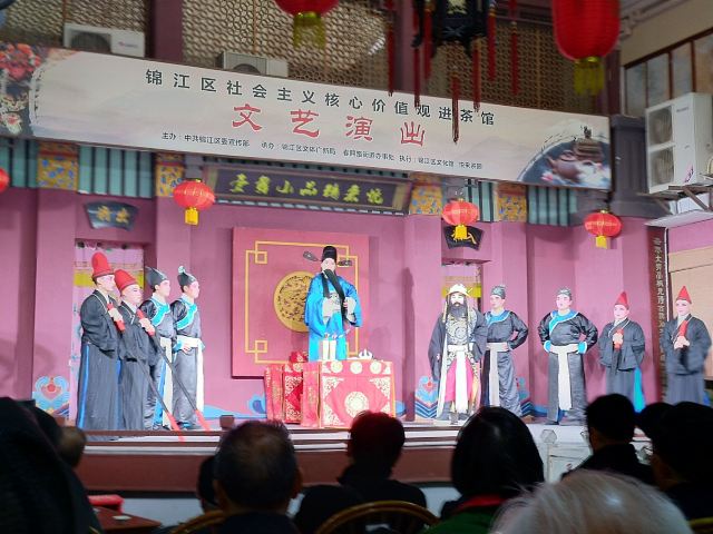 特别喜欢的一个地方,浓浓的老成都味道。每周六下午有川剧折子戏表演 ,票价很便宜,30~50元 ,还含一杯茶。这里喝茶不像其他地方,给你一个温水瓶自己添水,而是茶博士拿着长嘴铜壶往来座位之间添加,太有老成都的感觉。一边听着戏,一边喝着茶,还可以和周围坐的阿姨大爷们吹吹龙门阵,不要太惬意。
