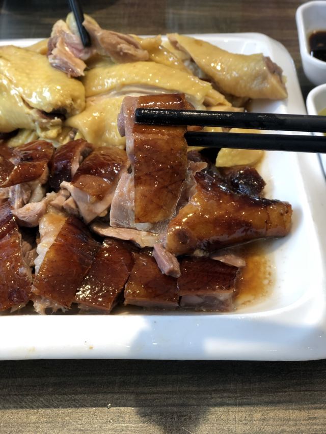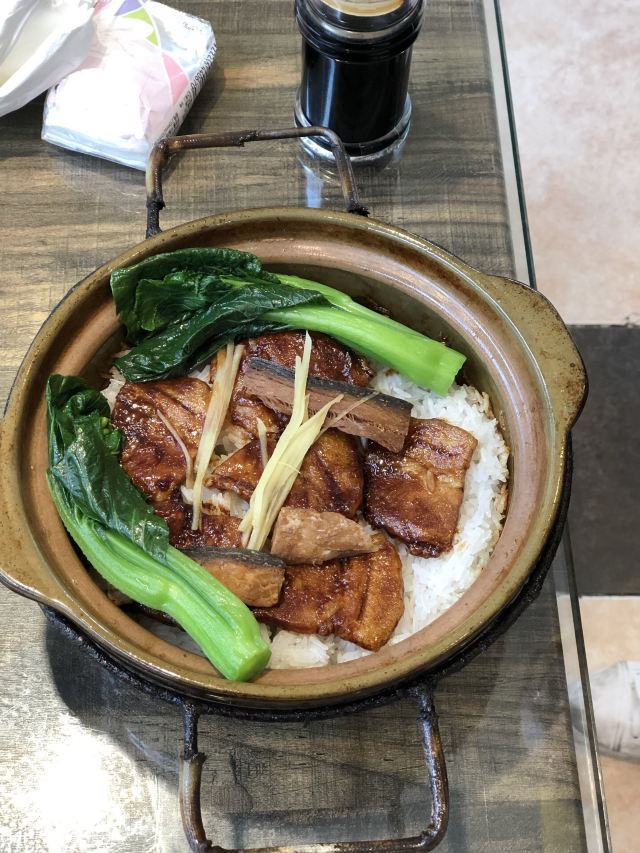 熊猫盖盖久闻全记大名,终于拔草 某人口中成都排名第一的粤菜馆 [环境] 店铺开在紫荆里,离神仙树公园不远 招牌很醒目,店在二楼,步行上楼 无电梯,中午饭点,客满,生意真的超级好 [服务] ipad点餐,上菜速度比较快 煲仔饭会现场帮忙拌匀 「烧鸭拼清远鸡」 他家的烧鹅挂在橱窗里,在灯光的照射下,看起来很诱人,烧鹅的皮很酥脆,但一定要趁热吃,不然皮冷了以后,凝聚的油脂会溢出,会觉得很腻。 烧鹅搭配了梅子酱,但是!梅子酱有点稀,酱汁不能充分的挂在烧鹅上。 清远鸡,鸡肉的肉质比较紧实,搭配葱油酱,我个人是喜欢的,不会油腻,比较清爽 「咸鱼五花肉煲仔饭」 点这道菜的时候,某人真的是认真的吗…… 咸鱼,盖盖吃不惯,真的很咸,尤其是和煲仔饭搭配起来更加突出咸…… 如果没吃过咸鱼的人真的慎点 煲仔饭本身锅巴很香,很脆,盖盖是喜欢的 西兰花,比较清爽,搭配酱汁盐味刚刚好 两人消费180多,性价比还是比较高