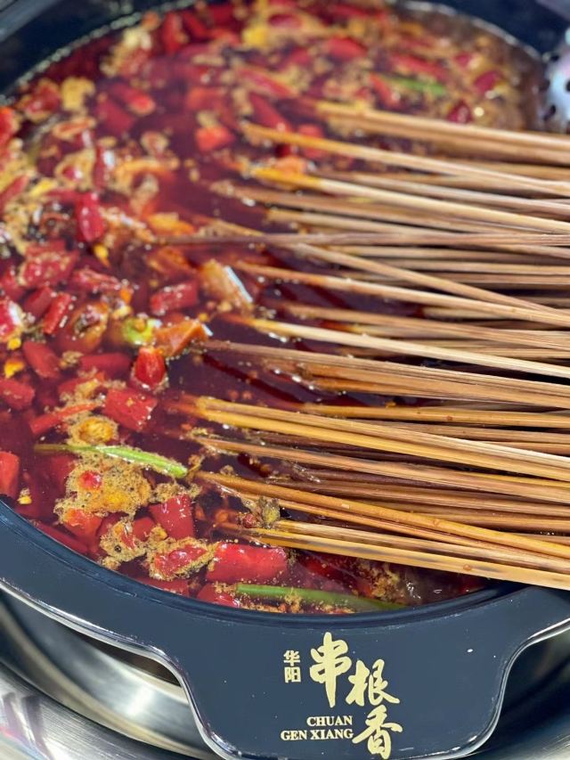 Chuangenxiangmalashuanzongdian自从这家串根香装修以后第一次来,下雨天依然人气很旺。牛肉串串是必拿,大坨大坨的,种类也很多,个人还是最喜欢香菜牛肉。腰片也不错,没有那种腰骚味。素菜里面牛皮豆干和魔芋片片最好吃,还有我最爱的新鲜黄花,要给菜品的新鲜度点赞,没得陈货。服务员阿姨的态度也好,一喊马上就来,二楼空调不给力阿姨也马上把空调扇搬过来给我们对到吹[偷笑]银耳汤1元一个人,性价比还是高,还是称得上华阳 LV 串串的称号