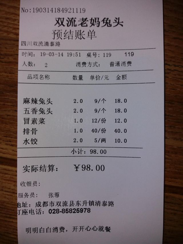 双流县城内非常正宗的一家兔头店。很多成都人大老远奔去,就为了吃一口地道的兔头。吃兔头就应该拿起就啃,麻辣的吃起最过瘾。据说这家店永远在排队,许多人堂吃不够还要外带回家,现在店内还有真空包装可以携带送礼啦。虽然环境一般,人也多,经常是非常挤;但价格不算贵,服务也过的去。除了兔头,他家的冒菜也很入味。