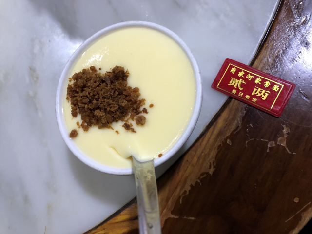 肖家河家常面东西品种很多,都很受欢迎。2两红油脆臊+1碗臊子蒸蛋是这里的绝配:蛋蒸得恰到好处,吃起来相当嫩;红油脆臊色泽和香气都很吸引人,味道就更不摆了。价钱还很便宜的说。这家的家常面味道还是挺不错,什锦米线、蔬菜豆腐皮够多。这点比灵芝妹子好很多,起码很符合家常面的名字,有一个问题要提出来,就是这家的陈醋,味道有点太稀了,水可能掺的多了吧。到了很多都没有什么醋味,灵芝妹子的陈醋就好很多,是个偶尔吃吃还好的地方。这家过家常面的汤头挺不错,没有那些香精味道。应该不是勾兑出来的,而且也不那么咸、齁死人的