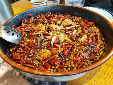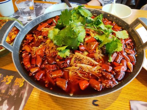 这是一家当地口碑很好的老店,用三十年不变的味道征服了众多食客。这里的特色是烤鸭,但是它的烤鸭和北京烤鸭不同,烤鸭是放辣的,在辣油中浸泡后, 烤鸭的香味夹杂着辣椒的味道,令人回味无穷,传承了三十年的冒烤鸭便是成都人舌尖上的记忆。