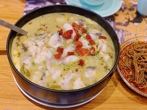 冒烤鸭,蟹黄豆花,冒鸭肠,藿香鲫鱼,干锅鸭唇,红糖糍粑,豆汤娃娃菜,酸汤鱼,冒汤烤鸭,玉米锅摊,凉拌茄子,水晶粉丝煲,水煮鱼,回锅肉,蟹肉豆腐,冒菜,冰粉,鲜椒去骨兔,鸭唇,松茸土鸡汤,毛血旺,尖椒鸡,荤豆花,冒鸭血,小炒黄牛肉,豆花
