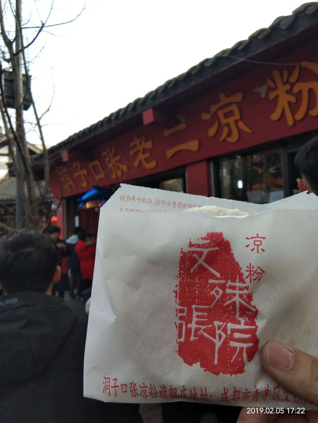 Dongzi Kouzhang Lao'er Liangfen《火到没地儿坐的老成都味》 成都的张老二凉粉总被大家称为不老的神话,他家店在文殊院的斜对面,据说一间破破烂烂的瓦房经稳稳当当地开了半个多世纪,从没有挪过窝。 这是一家热门餐厅,曾上过一个美食节目,所以游完文殊院后,就慕名来到了这里。发现进店吃凉粉的人总是如潮水般涌进退出,不少是当地人,还有来打卡的游客。 凉粉是一种很成都的市井小吃,张老二凉粉店的凉粉品类颇多,有用豌豆做的白凉粉和黄凉粉,也有用米浆做的米凉粉。按图索骥点了凉粉锅盔和豌豆黄凉粉。 它家延用以前国营饭店的那一套:排队买票,再拿着一种相当有“历史感”的纸片,上面写着品名和价格,自己到不同的窗口排队去端。遇上高峰期,还真得一人排队一人占座,要不然就只能在门口端着碗站着吃啦。 凉粉上桌,份量不大,凉粉上浇有一种事先炒制好的酱料,比较黏稠。豌豆凉粉本身无味,也不甚入味,有了这种酱料的辅佐,入口爽滑,吃起也滋味十足。 洞子口张老二凉粉店名虽然是凉粉,但还卖抄手、水饺、凉面、甜水面、担担面等,其中甜水面的名头甚至还一度高过了自家的凉粉。就连曾经红火一时的成都“牙尖帮”,几年前唱过一首叫《成都好吃嘴》的歌,歌词写的成都一些小吃:“华兴街的麻辣烫,锅锅端了还在香;多半只有三河场,才买得到正宗绞绞糖;文殊院旁边甜水面,还只是卖两块五一碗……”专门提到这家店的甜水面。 作为老成都记忆里的味道,一碗凉粉与甜水面,承载老成都人从儿时到白发的记忆,每一个来成都的人都得来这家店吃上一口凉粉或甜水面,这才算是到了成都。 小贴士: 洞子口张老二凉粉 地址:四川省成都市青羊区文殊院街39号(文殊院正门斜对面) 人均:15元 推荐指数:5星 推荐美食:凉粉,甜水面。