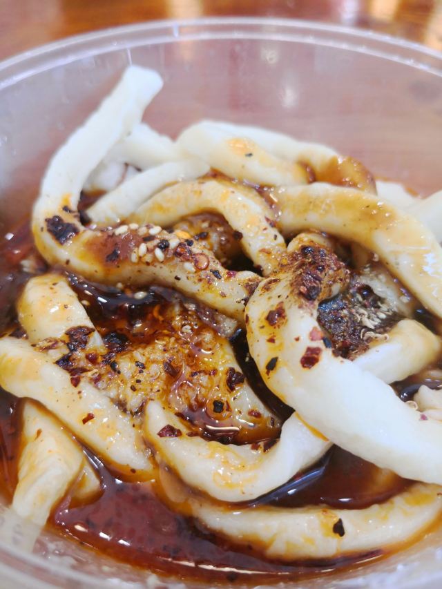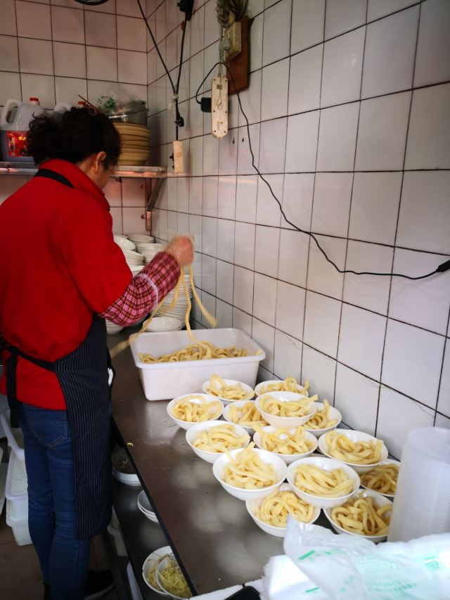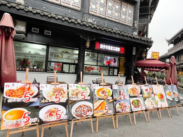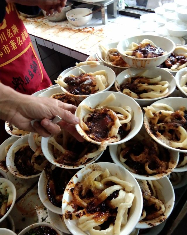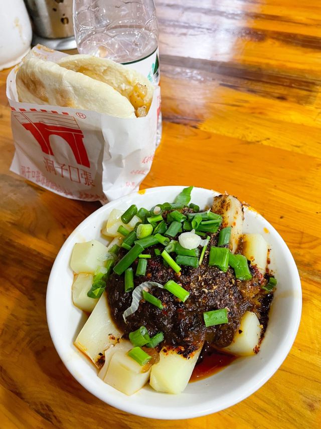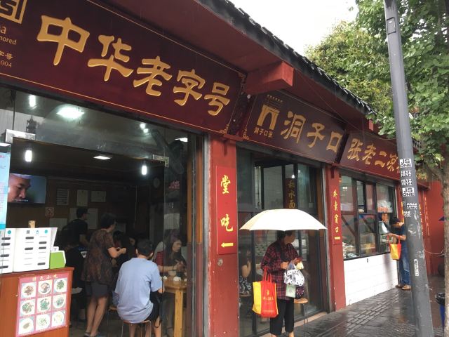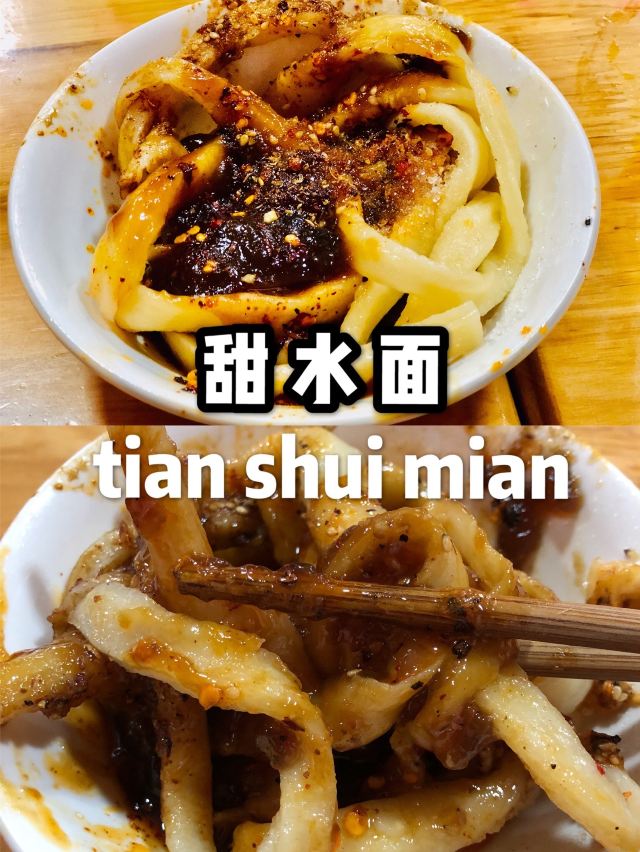 筱风姿成都文殊院边的美食top1-洞子口张老二凉粉 在不知道吃什么得时候 意外看到一篇推文 恰好这里有景点、茶馆、还有美食店 那就来这里好了 确实还蛮推荐的 本来打算去尝一下素食 最后还是决定去这家 人人都说好的 “洞子口张老二凉粉” 甜水面¥10.00 面粉140g 主要还是上面的酱汁更加是精髓吧 反正来这里的肯定会点一份甜水面 这个推荐给不会吃辣的你 面条很有劲道,就是比较粗壮的面条,我居然没吃完; 红油抄手¥10.00 面粉50g,猪肉100g 这个吧其实并没有很好吃,个人感觉抄手皮太厚实了些,看来这方面还是更偏爱东北饺子 我看着反而更喜欢黄豆粉,应该是凉凉的那种,就是排队买太麻烦,放弃了。 耳片锅盔¥12.00 昨天吃了另一家的念念不忘 在吃这家的,外面的饼皮很一般,咬着费劲 红油都流出来了,吃的时候要小心哦,不要弄脏了衣服 ⚠️tips: 店面不大,人流量密集,需要自助式用餐; 首先排队点单付钱,然后按照冷盘和热菜分别窗口取货: 锅盔是外带的,直接外面窗口取货; 甜水面等不用煮的在右边窗口凭票取货; 红油抄手等需要煮的在左边门递票等上菜; 服务:大哥态度蛮好的,现场制作也很快速,就是人真的太多,收拾来不及; 店铺:洞子口张老二凉粉 地址:文殊院街39号 交通:地铁文殊院K口 人均:¥15.00 ⏰营业时间:8:30-18:30(春节放假) 推荐菜:甜水面、黄豆粉、豌豆凉粉、牛肉担担面