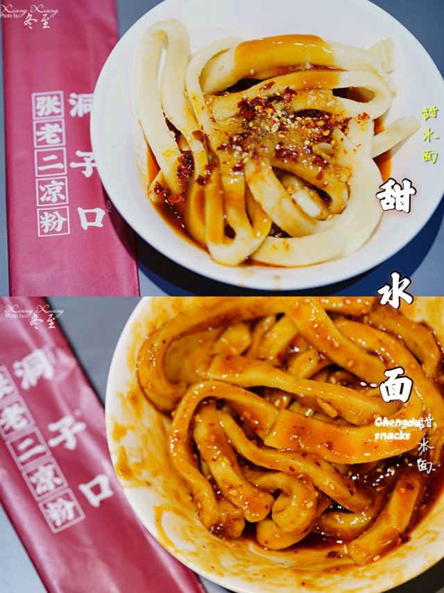 千嶂千澜🉑🉑🉑洞子口凉粉绝对是成都地道小吃的代表‼️💯 📢📢📢从小吃到大的洞子口凉粉改头换面,入驻商场🏣了喂! 🤗🤗🤗虽然一直搞不清洞子口的具体位置,但一点都不妨碍我对他家的喜欢。😍😍😍 🥢店名:洞子口张老二凉粉(玉林店) 📬地址:来福士广场B2楼55号 🚌交通:地铁🚇一、三号线(省体育馆站);公交🚌1⃣6⃣路、公交🚌1⃣9⃣等多条线路(省体育馆站) 💰人均:15元 🌿环境🌿 比起以前的街边小店,商场铺面就安逸了太多。不过,座位比较打挤,高峰期需要拼桌。 🛎服务🛎 店员手脚麻利,态度很好,点单出餐打扫都很及时。 🥢🥢🥢洞子口凉粉的三大镇店之宝——旋子凉粉、黄凉粉、甜水面都要尝一哈仨。😄😄😄 🍜黄凉粉🍜|黄凉粉^ 黄凉粉本身稍微有点碱味,口感软糯调料中有很多豆豉碎,辣味相对比较温和。😌😌😌 🍜旋子凉粉🍜|旋子凉粉^ 旋子凉粉原料是豌豆,用多孔刮,刮成一溜一溜的,口感要爽脆一些。 小时候,我时常守在凉粉摊摊前看刮凉粉,蜜汁喜欢。🤣🤣🤣 旋子凉粉的佐料我喜欢,熟油辣椒主打,加上复制酱油、花椒面等调料,香香滴嘞。😋😋😋 🍜甜水面🍜|甜水面^ 甜水面真爱粉、脑残粉。特别喜欢那种甜辣的香味和粗面条的嚼劲,真的是说到就流口水的程度。😂😂😂 ♥️♥️♥️窃以为,最好吃的甜水面是洞子口的张老五,从佐料到面,都是无可挑剔。可惜老爷子收山了。😭😭😭 ✅✅✅老字号顺应潮流,门店连锁,出品统一,是好事情!😄😄😄 ✳️✳️✳️虽然肯定比不上小时候的味道,但来吃吃怀怀旧,也是不错的选择。😊😊😊
