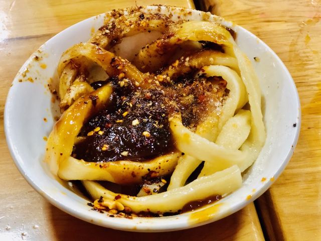 心灵宫殿《火到没地儿坐的老成都味》 成都的张老二凉粉总被大家称为不老的神话,他家店在文殊院的斜对面,据说一间破破烂烂的瓦房经稳稳当当地开了半个多世纪,从没有挪过窝。 这是一家热门餐厅,曾上过一个美食节目,所以游完文殊院后,就慕名来到了这里。发现进店吃凉粉的人总是如潮水般涌进退出,不少是当地人,还有来打卡的游客。 凉粉是一种很成都的市井小吃,张老二凉粉店的凉粉品类颇多,有用豌豆做的白凉粉和黄凉粉,也有用米浆做的米凉粉。按图索骥点了凉粉锅盔和豌豆黄凉粉。 它家延用以前国营饭店的那一套:排队买票,再拿着一种相当有“历史感”的纸片,上面写着品名和价格,自己到不同的窗口排队去端。遇上高峰期,还真得一人排队一人占座,要不然就只能在门口端着碗站着吃啦。 凉粉上桌,份量不大,凉粉上浇有一种事先炒制好的酱料,比较黏稠。豌豆凉粉本身无味,也不甚入味,有了这种酱料的辅佐,入口爽滑,吃起也滋味十足。 洞子口张老二凉粉店名虽然是凉粉,但还卖抄手、水饺、凉面、甜水面、担担面等,其中甜水面的名头甚至还一度高过了自家的凉粉。就连曾经红火一时的成都“牙尖帮”,几年前唱过一首叫《成都好吃嘴》的歌,歌词写的成都一些小吃:“华兴街的麻辣烫,锅锅端了还在香;多半只有三河场,才买得到正宗绞绞糖;文殊院旁边甜水面,还只是卖两块五一碗……”专门提到这家店的甜水面。 作为老成都记忆里的味道,一碗凉粉与甜水面,承载老成都人从儿时到白发的记忆,每一个来成都的人都得来这家店吃上一口凉粉或甜水面,这才算是到了成都。 小贴士: 洞子口张老二凉粉 地址:四川省成都市青羊区文殊院街39号(文殊院正门斜对面) 人均:15元 推荐指数:5星 推荐美食:凉粉,甜水面。