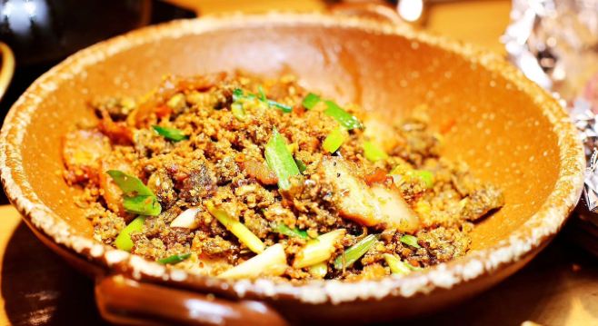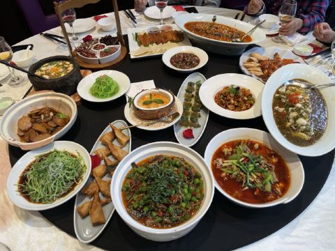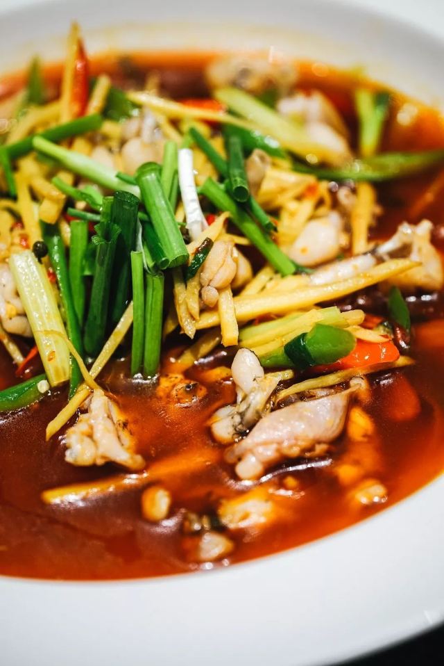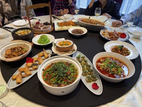 随和沸腾鱼,美极鲜肉配薄饼,桃胶椰子冻,红糖糍粑,凉拌猪蹄,豆泥茄丁,家宴堂土鸡片,金汤鲍鱼捞饭,泡椒乌鱼片,绍兴花雕鸡