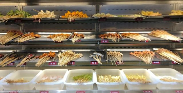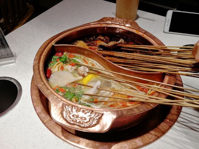 川大南门口的一家串串店,店内有两层楼的营业面积,环境在串串店中算是好一点的。他家的锅底是现做的,锅底油和干辣椒等都是分别密封好,不吃辣的还可以选择白锅底,菜品种类挺多,都蛮新鲜的。吃串串的时候,还可以点一份冰粉,辣味一下就被冲淡了。店里的服务还过得去,价格适中。