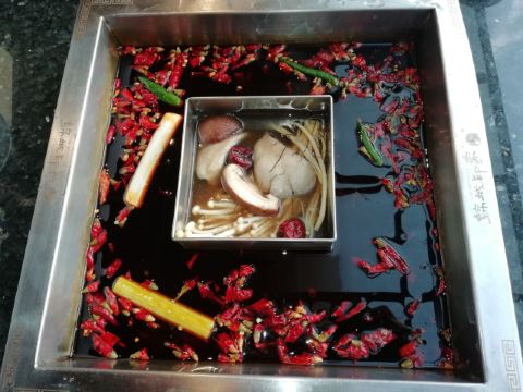 店内装潢古色古香,跟附近的武侯祠名胜风景区有着同样中式古朴的风格。底料依靠人工单锅单炒,食材也只在单店进行处理,蘸料是成都特色的香油,从各个环节接近传统正宗的老成都味道。