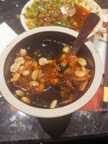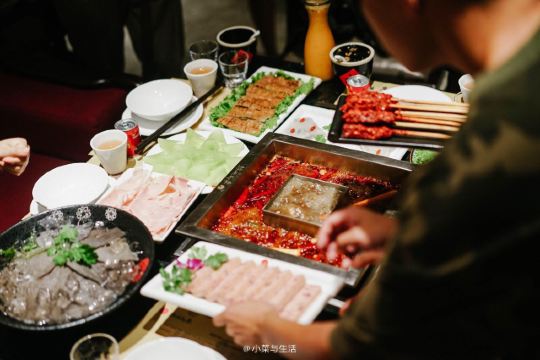 CHINA SAMITE-HOT POT来成都吃的第一餐,在市中心耍都,离锦里比较近,我们六点钟到的,店内已经没有位置,只能坐在阳台上了,不过正好可以看街景,进门就闻到扑鼻的香味,还没开吃已经流口水了,因为不是太能吃辣,我们点了微辣红油菌汤鸳鸯锅,后来还是很辣了,鹅肠现剪短的,烫一烫就可以吃了,很脆;毛肚很大块,很嫩;加拿大肥牛味道很不错;卤猪大肠下火锅是第一次吃,煮长一点时间软软的也很好吃;红糖糍粑、冰粉、八宝粥味道都很不错,吃完又到锦里去逛去了,真是愉快的一个晚上!