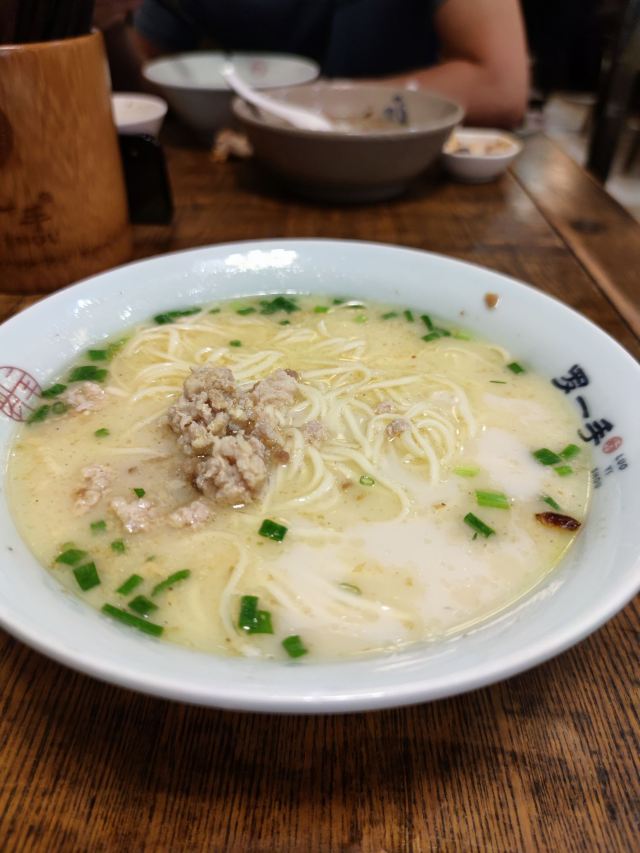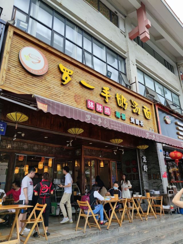 门面不大,但店内清洁的一家小饭馆,奶汤面这里的招牌,奶汤就是熬的像牛奶一样白稠的大骨汤,再搭配湿面和葱花。店内还有很多本地菜品,兔儿脑壳、鸡脚、鸭脚都很地道。