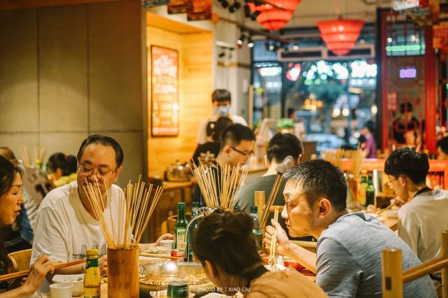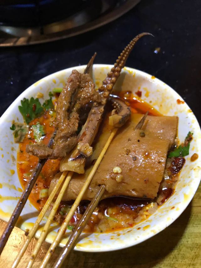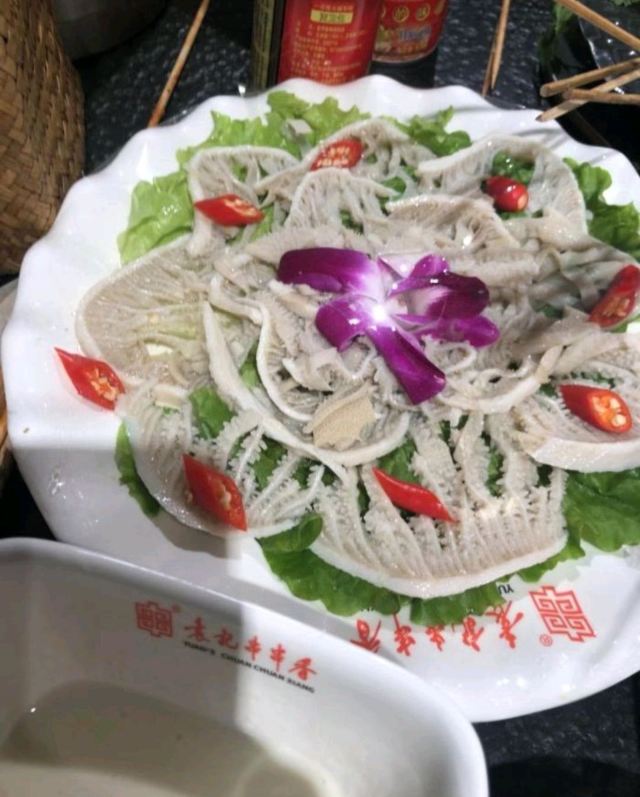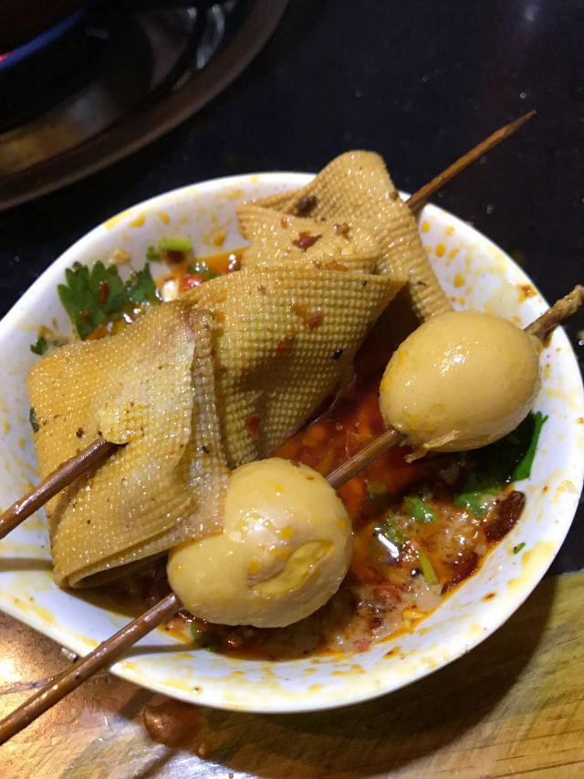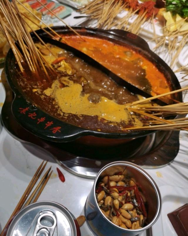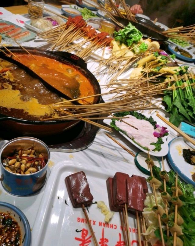 Yuan Ji ChuanChuan Xiang (Xinnanmen Main Branch)火锅和串串想必是大多数小伙伴的最佳选择了。朋友们约了我一起去袁记吃串串,五花肉、掌中宝、小花腰、烤脆肠、峨眉烤胸口捞,各式各样的烤串儿都来了点,麻辣鲜香,太考验我的吃辣能力了。 于是老妈蹄花和吉祥六宝煮冰粉成了我的救星!老妈蹄花汤底浓稠,猪蹄炖得又软又糯,满是胶原蛋白的感觉。手搓冰粉端上桌居然是热的,里面加了不少红枣和枸杞呢! 还有冒脑花、九鼎鱼、干冒鲜花蛤、干冒凤尾虾、冒鲜鸭血、冒鲜毛肚,味道都蛮不错。服务也非常到位,总之爱吃辣的小伙伴来这里就对了!