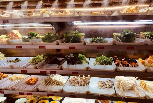 生意很火爆的一家串串香店,环境和大多数串串店不一样,干净整洁,服务也是不错,店内气氛非常热闹。菜品非常丰富,看起来都挺新鲜干净,主打的牛肉肉质很嫩。