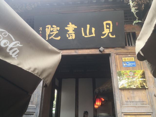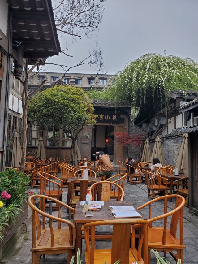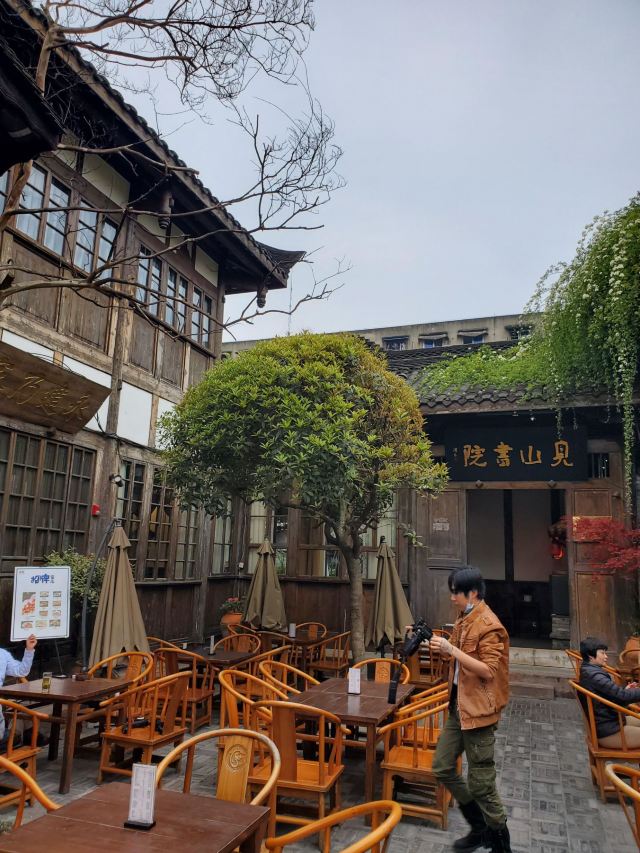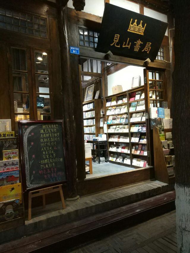 见山书院,位于成都的宽巷子的22号,其实见山书局和见山书院是一家,前面是见山书局,主要是售卖各类书籍,成都的明信片和旅游纪念品,而里面是见山书院,是喝茶和吃饭的地方。餐厅主营川菜,毛血旺和藿香鲫鱼推荐一试。