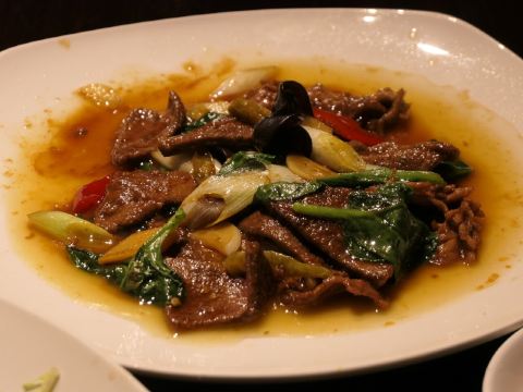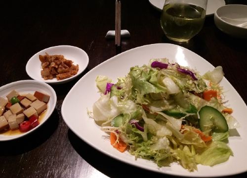 Qintailangqiao在蜀风雅韵旁边找到一家不是火锅的餐厅《琴台廊桥》,有提供“不辣的菜”,老两口就安心的坐了下来。餐厅的环境似乎比较适合小众,灯光是聚光灯多,很像年初在上海的威斯汀外滩店中餐厅用餐时的感觉。心想能营造出这样氛围的餐厅,菜品应该也比较讲究吧。 只挑不辣的菜,一个腰肝双拼,一个香拌时蔬,外加两碗白米饭。 香拌时蔬先上,正合口味,中国式的生菜沙拉,酸酸甜甜香香的非常爽口开胃,一下子就吃掉大半盘。这个菜的量挺足的,我们在香港去麦当劳常要生菜沙拉,三十多一客,量还不到这个一半。 客人不多所以腰肝双拼不一会儿也上了。 挑选这个菜考虑的是两人吃不了许多,这种双拼的可以吃到两样食材又不过分正合适。这个菜做得真好,腰是腰肝是肝,同处一盘却保持味道各异,而且都做得细润绵软,真不简单。我们自己炒猪肝,常常会炒过硬,炒腰花也是,这里他两样都恰到火候,绝了。