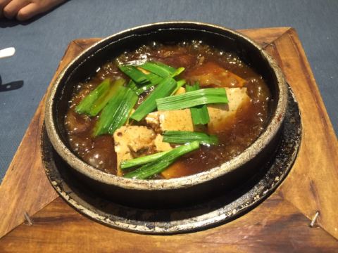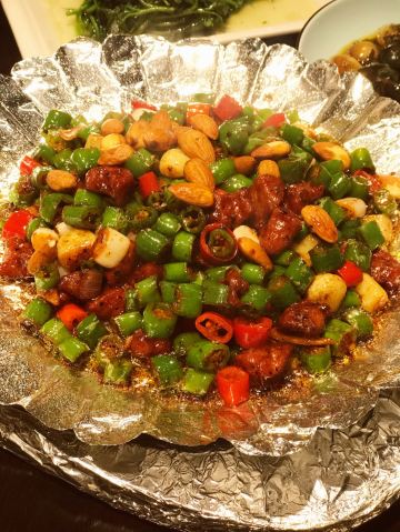 石锅江团,烧椒蚌片,青椒跑山鸡,烤乳鸽,石板牛肉粒,木瓜桃脂血蛤,桂花糕,石锅鲈鱼,火爆鱼,木瓜桃脂炖燕窝,凉拌鸭掌,油泼波士顿龙虾,秘制鹅掌