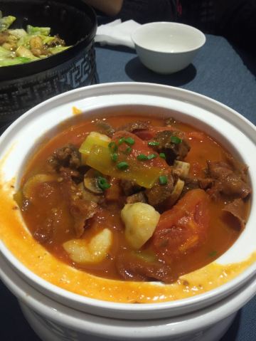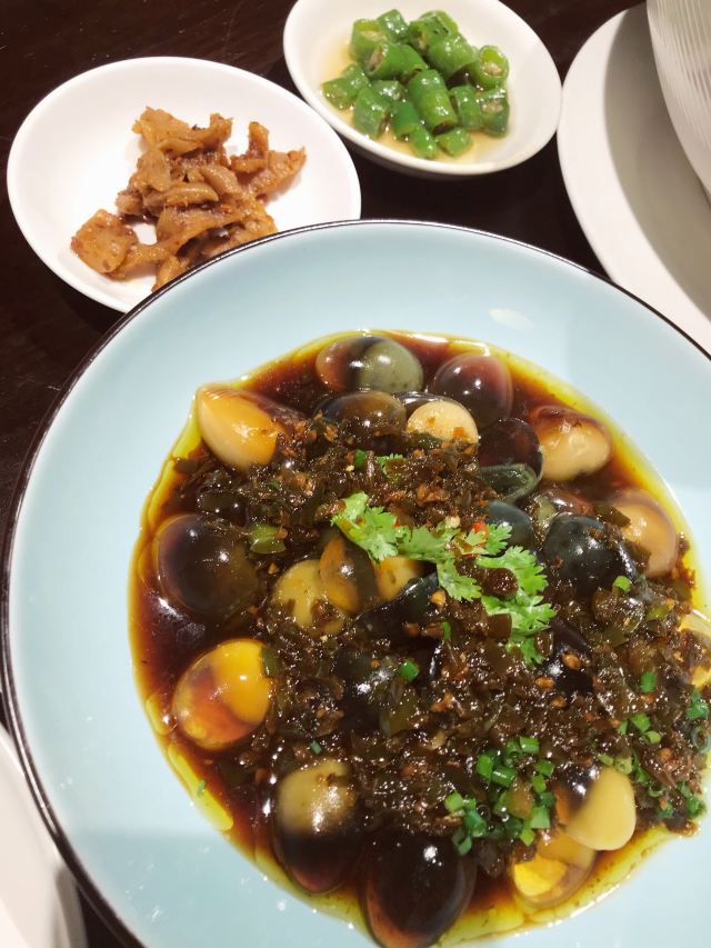 YoYo_4Q5M0T4Z在蜀风雅韵旁边找到一家不是火锅的餐厅《琴台廊桥》,有提供“不辣的菜”,老两口就安心的坐了下来。餐厅的环境似乎比较适合小众,灯光是聚光灯多,很像年初在上海的威斯汀外滩店中餐厅用餐时的感觉。心想能营造出这样氛围的餐厅,菜品应该也比较讲究吧。 只挑不辣的菜,一个腰肝双拼,一个香拌时蔬,外加两碗白米饭。 香拌时蔬先上,正合口味,中国式的生菜沙拉,酸酸甜甜香香的非常爽口开胃,一下子就吃掉大半盘。这个菜的量挺足的,我们在香港去麦当劳常要生菜沙拉,三十多一客,量还不到这个一半。 客人不多所以腰肝双拼不一会儿也上了。 挑选这个菜考虑的是两人吃不了许多,这种双拼的可以吃到两样食材又不过分正合适。这个菜做得真好,腰是腰肝是肝,同处一盘却保持味道各异,而且都做得细润绵软,真不简单。我们自己炒猪肝,常常会炒过硬,炒腰花也是,这里他两样都恰到火候,绝了。