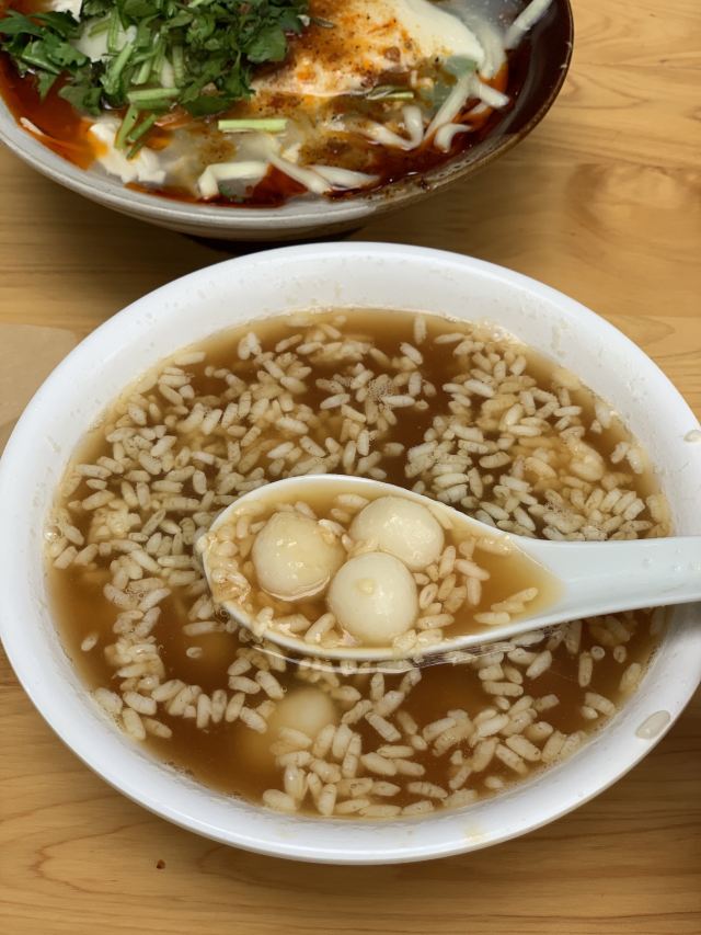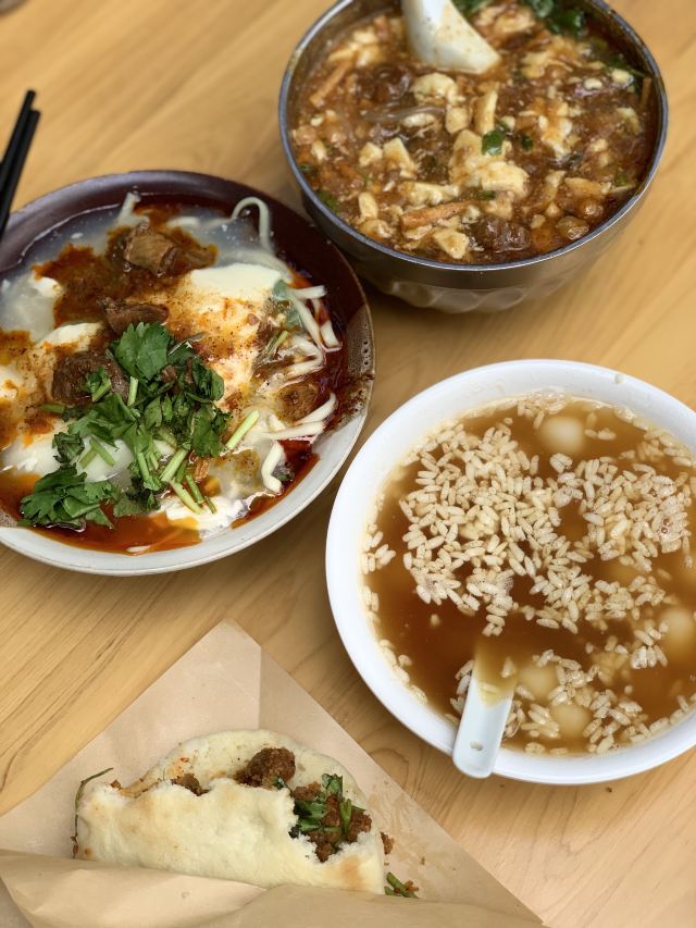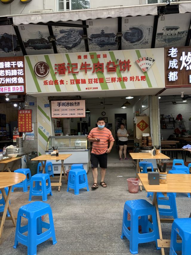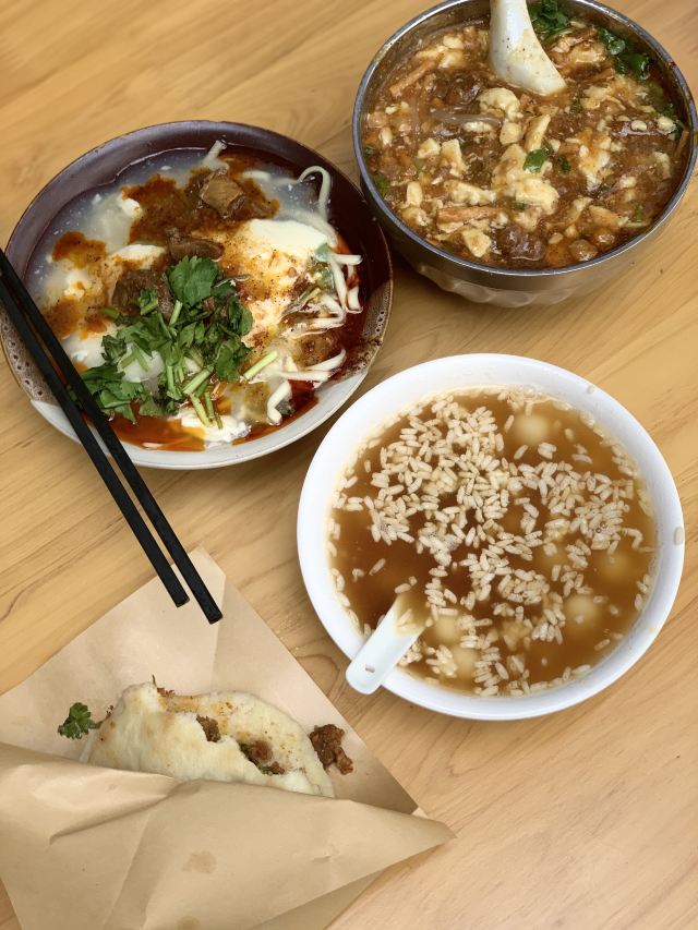 总评: 推荐豆腐脑,是好吃的那种等级,食材丰富,口感层次饱满。 其他的我觉得一般吧,但是可以顺便一起尝尝。 建议错开饭点过去,因为那一排的餐饮都很火爆,会等比较久。 性价比:❤️❤️❤️ 评分:75分 这家店真的是收藏了很多年很多年,终于在今年的体检中途去拔草了。 华西体检早餐内容包括:一盒牛奶,一个白煮蛋,一个老婆饼,我的天,饥肠辘辘的我吃完还不够塞牙缝,所以果断出门觅食,吃完回去接着项目检查! 这家店离华西医院也就几分钟的步行距离,很方便的。 因为离医院太近了,我也不踏实,还是要有点距离比较好哦! 【鸳鸯咔饼】9元 这个虽说是店招牌,但是味道特别葡萄,饼子太厚,口感也并不怎么软绵,还好有加热,不然肯定更不好吃。 中间粉蒸牛肉+粉蒸肥肠还行,不算特别好。凑合可以吃吃。 【粉蒸牛肉豆腐脑】15元 这个我挺满意的。豆腐脑挺细嫩的,汤羹的浓稠度刚刚好,然后底料的辣油也比较香,再就是最主要的有脆脆的馓子和香酥黄豆。还有隐藏在最下面的红薯粉哟。 吃之前记得一定要搅拌均匀,一大勺入口,那叫一个丰富多彩呀! 【红糖醪糟粉子】7元 红糖得味道还是比较浓香的,醪糟也给的比较足。只是可惜了那个粉子那么大颗,竟让不带馅儿。 如果是粉子就小粒一点吧,如果是汤圆就带馅儿吧。 【豆花牛肉面】10元 对于豆花面我一直不是特别喜欢,总觉得黏糊糊的一碗面,吃起来,喝起来都觉得怪怪的。 嗯,豆花就是豆腐脑里面的那个豆腐脑。 面条就是一般的挂面。 整体来说,普普通通啦! 嗯,老板娘态度还不错,挺麻利的一位女士。也还是比较热情吧。 下周要去乐山吃好吃的啰!开心!